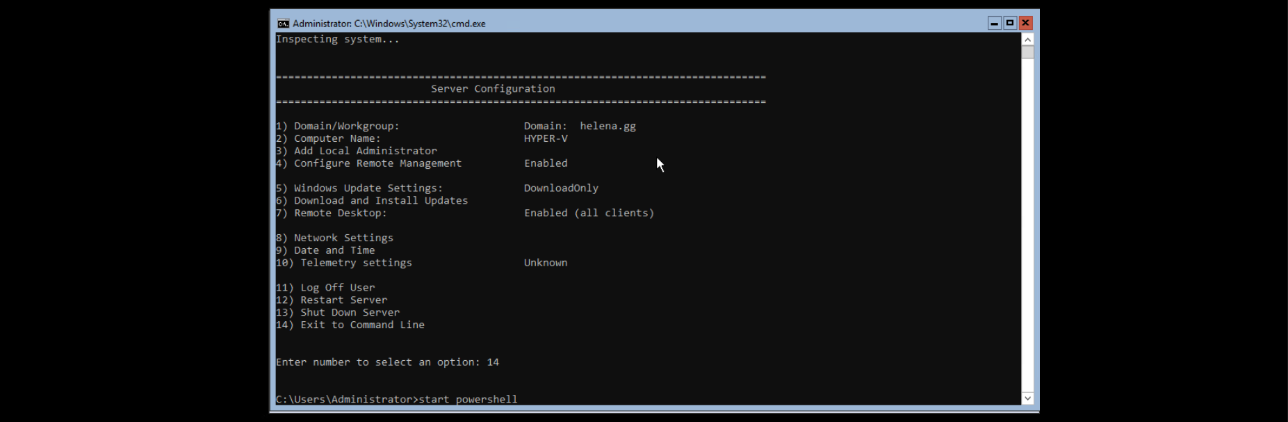 Then select option 14 to launch CMD, and type “start powershell” to launch Powershell