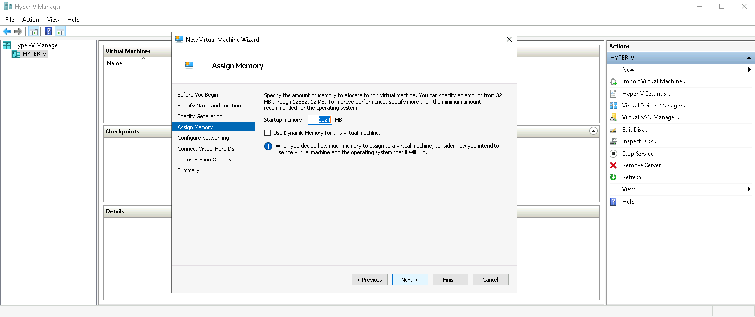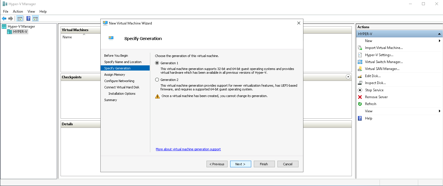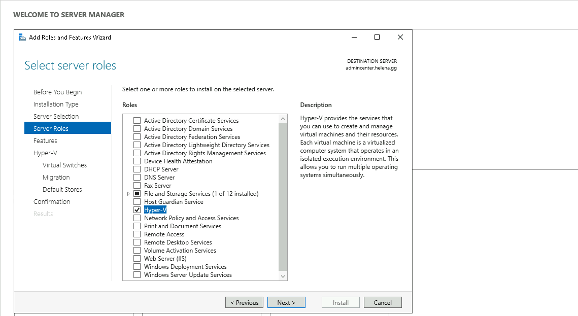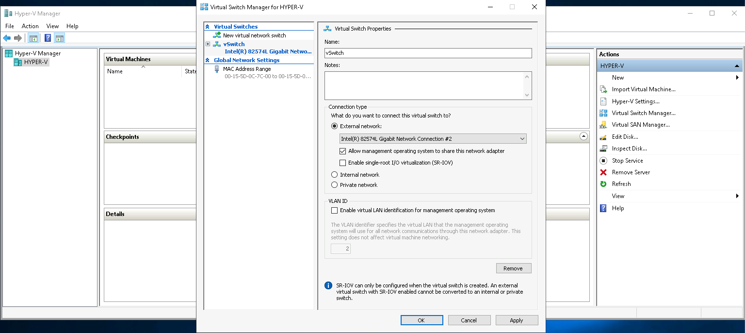 First create a new server for Hyper-V with enabled virtualization CPU and 2 network interfaces