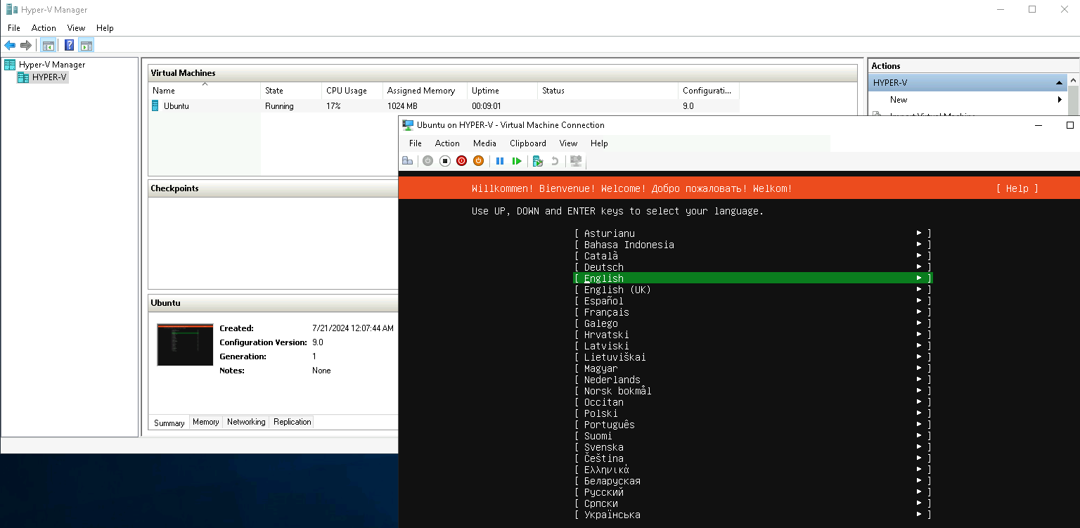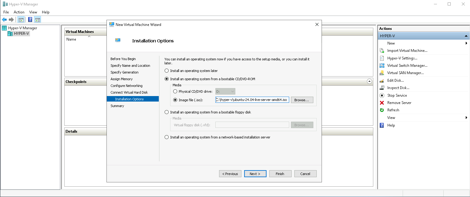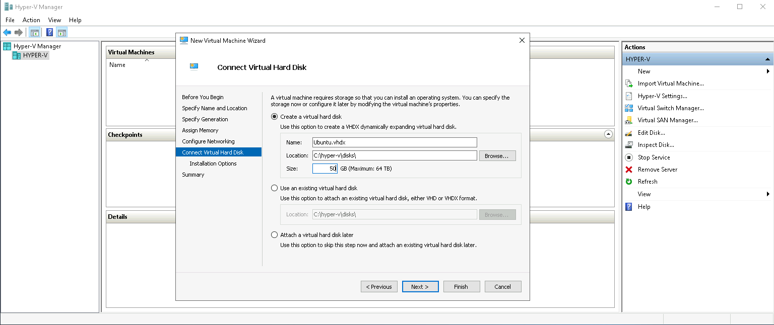 First create a new server for Hyper-V with enabled virtualization CPU and 2 network interfaces