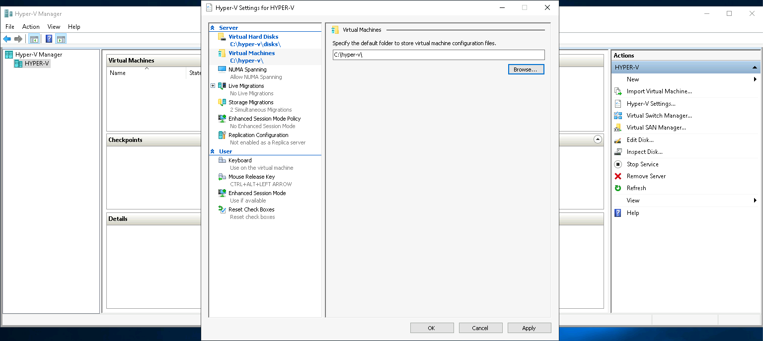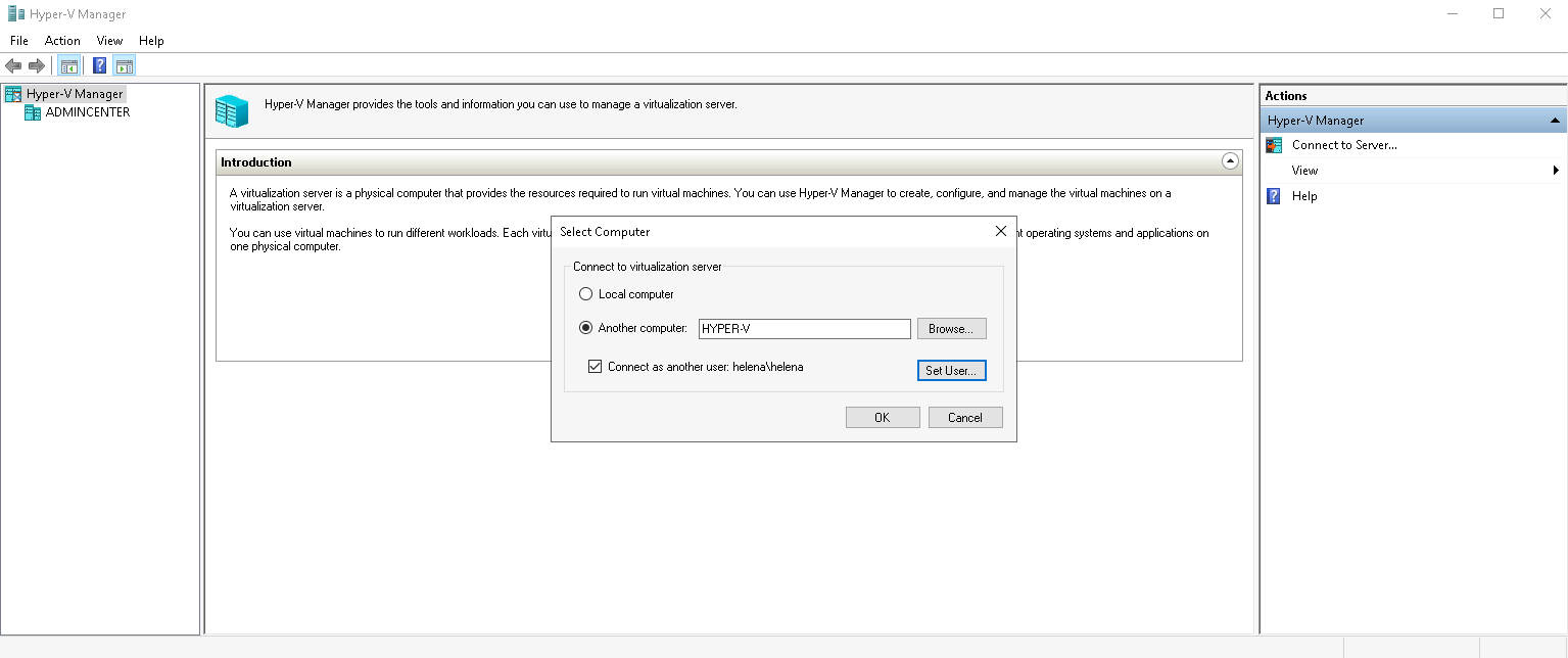 Then open the Hyper-V Manager and add the Hyper-V Server to the manager