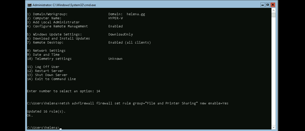 To manage the Hyper-V’s directory and also to move file there, we need to be able to access it through SMB. First let’s enable the firewall to do that