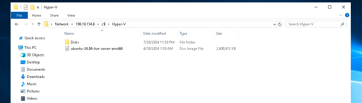 Now we can access the “c$” directory with SMB. Here we can create new directories for our VMs.