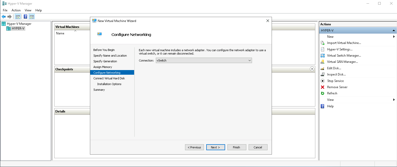 To allow our VMs to access the outside network, we need to create a Virtual Switch attached to an actual Network Interface