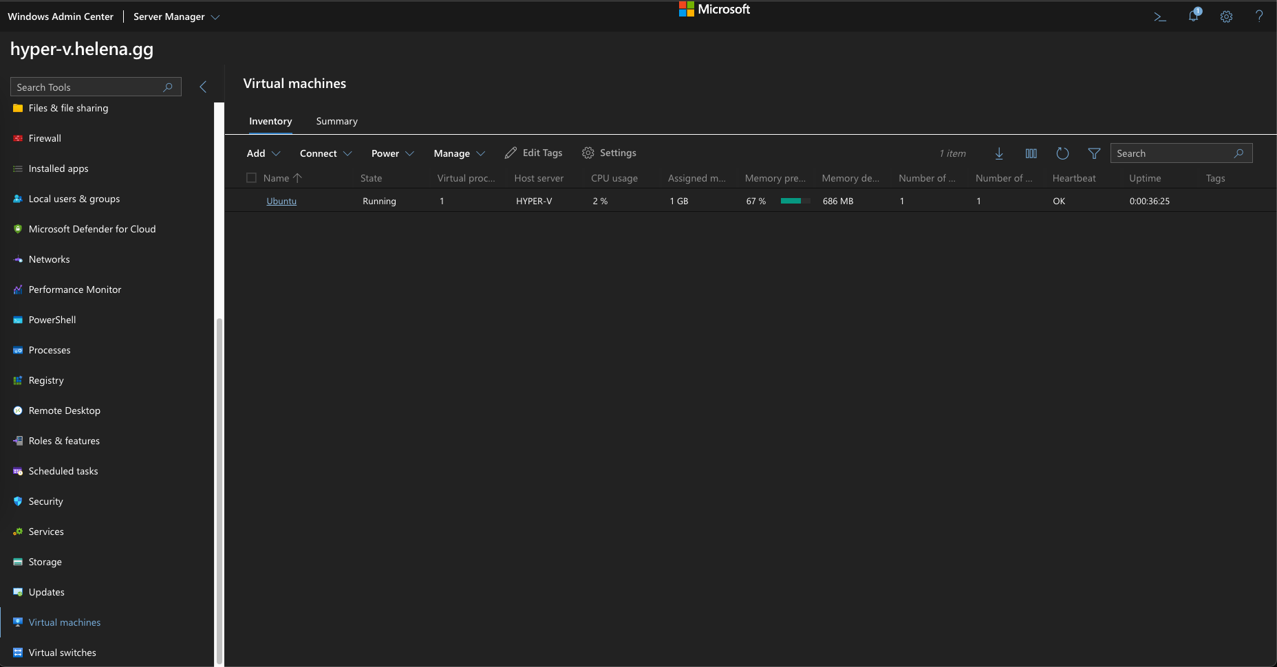 Now we have successfully managed the Hyper-V Server from Admin Center
