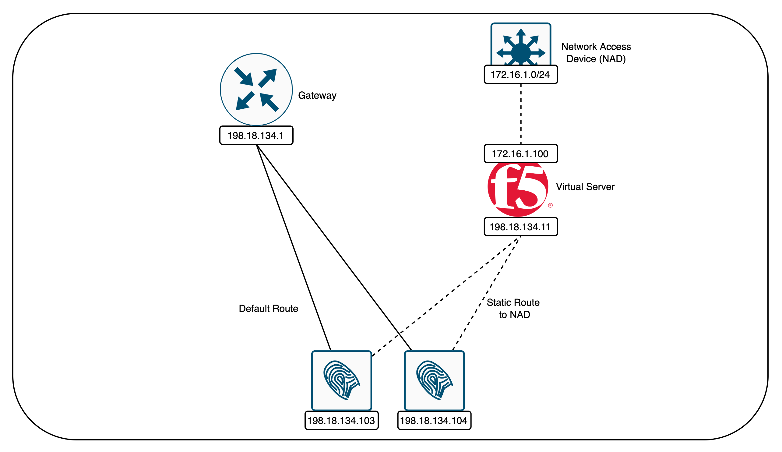 On both ISE Servers, because the default gateway is not pointing to the F5, we need to engineer the traffic coming from NAD though F5 to be returned back to F5 with static routes