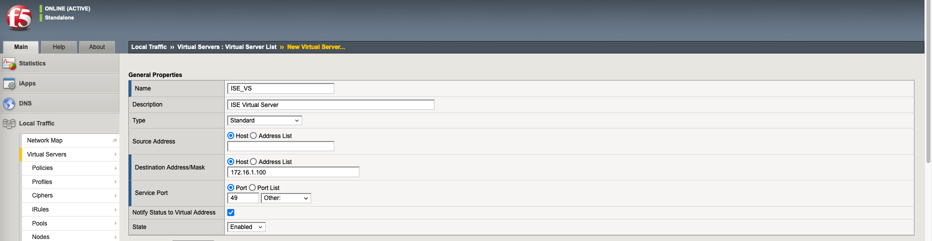This configuration examines the use of an F5 Virtual Server as a load balancer for Cisco ISE TACACS+ servers. By configuring the F5 to balance TACACS+ traffic, it optimizes resource utilization and enhances fault tolerance across Cisco ISE instances, ensuring reliable and efficient management of network device access and security policies.