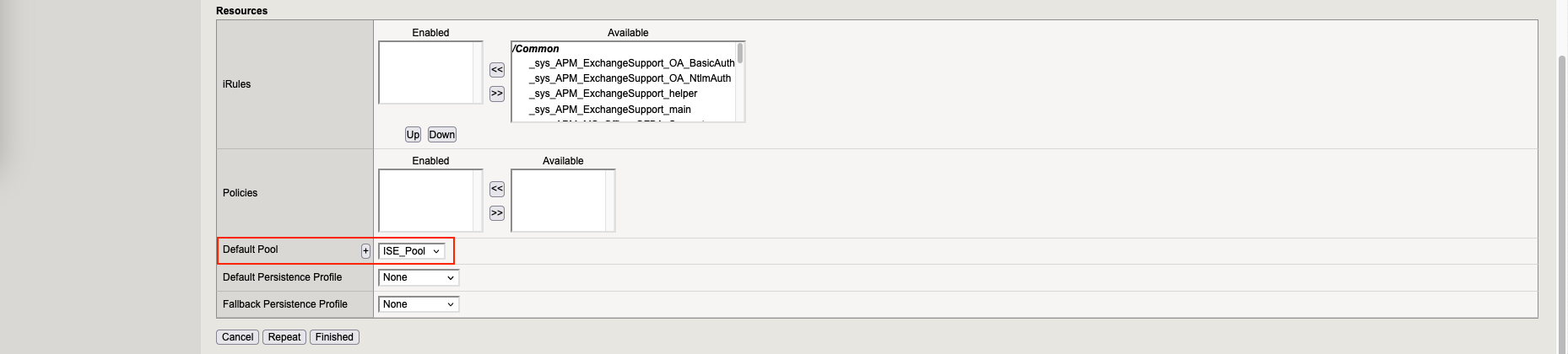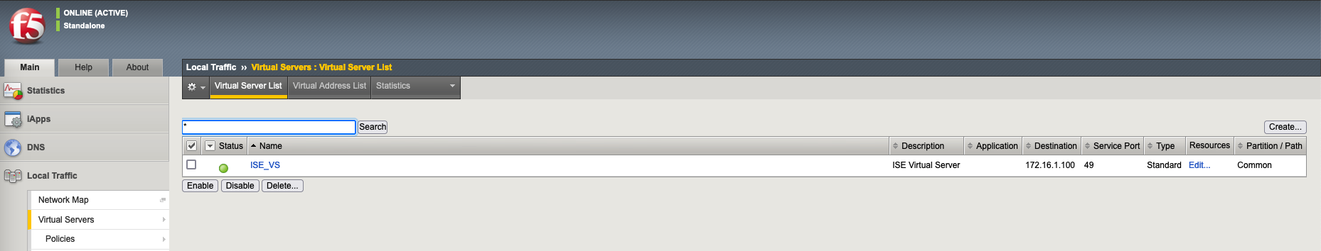 Then we create a new Virtual Server pointing to the Virtual IP with member being the ISE Pool