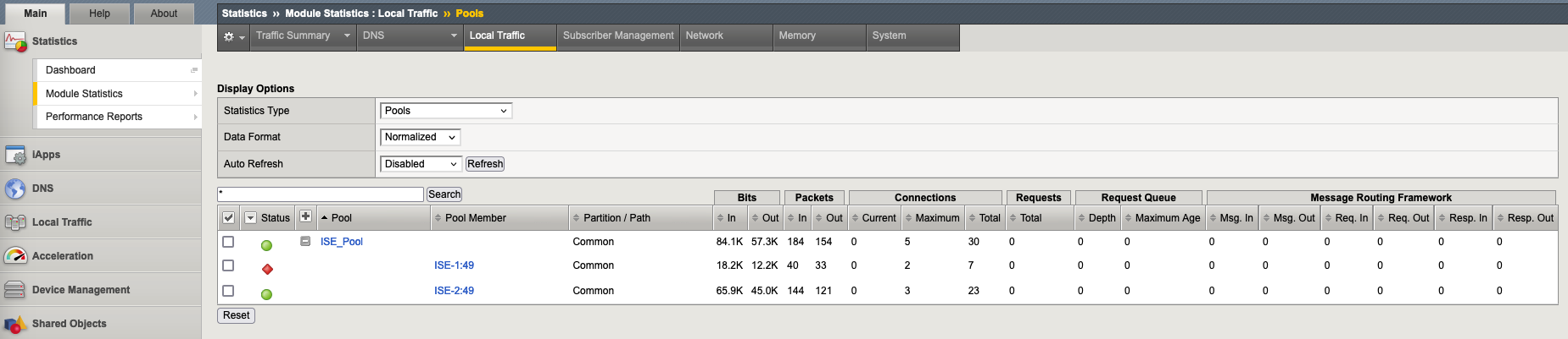 Now if we try to authenticate to the NAD, F5 will load balance the request to both ISE Servers