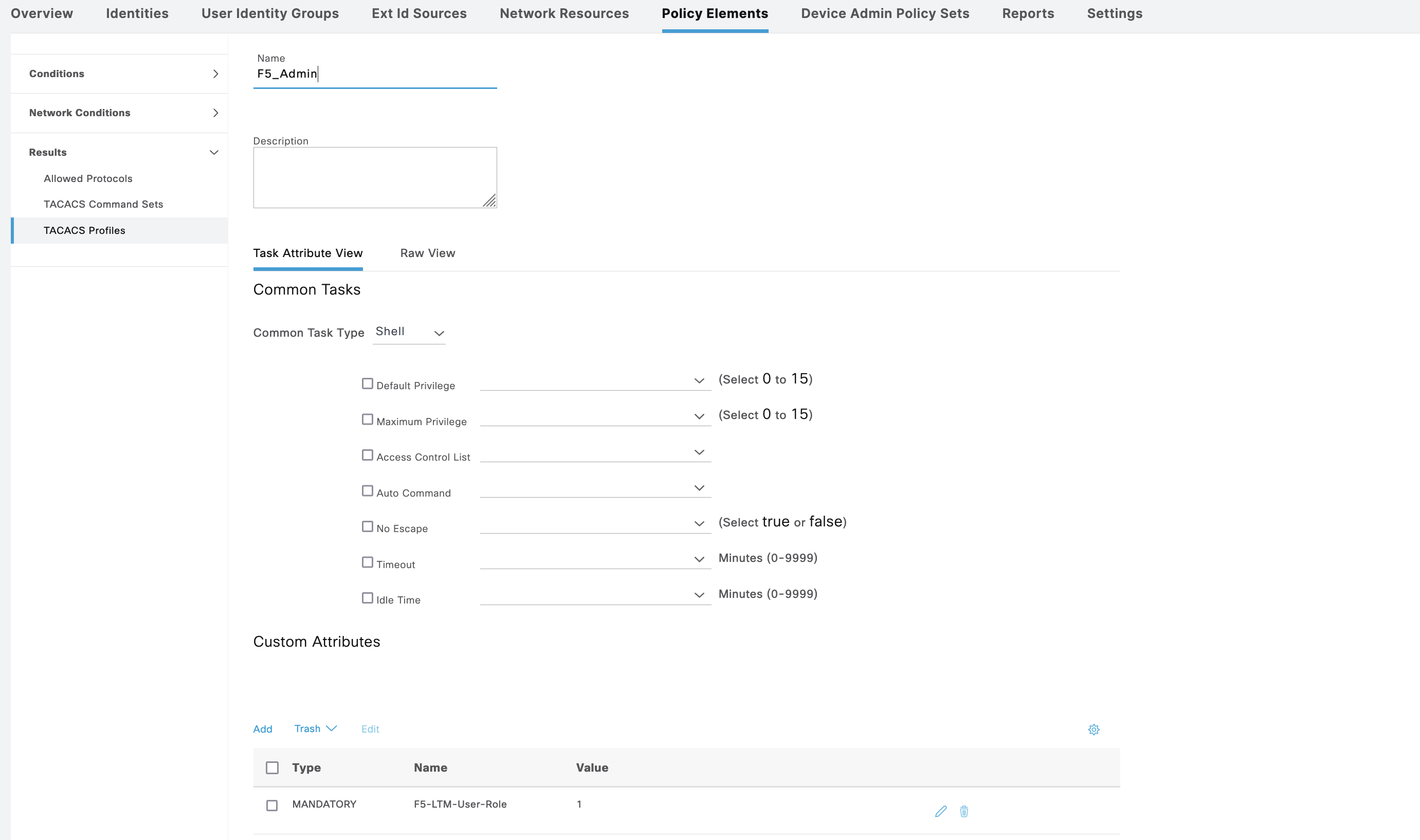 First we create a Policy Sets for F5 with 2 Shell Profiles
