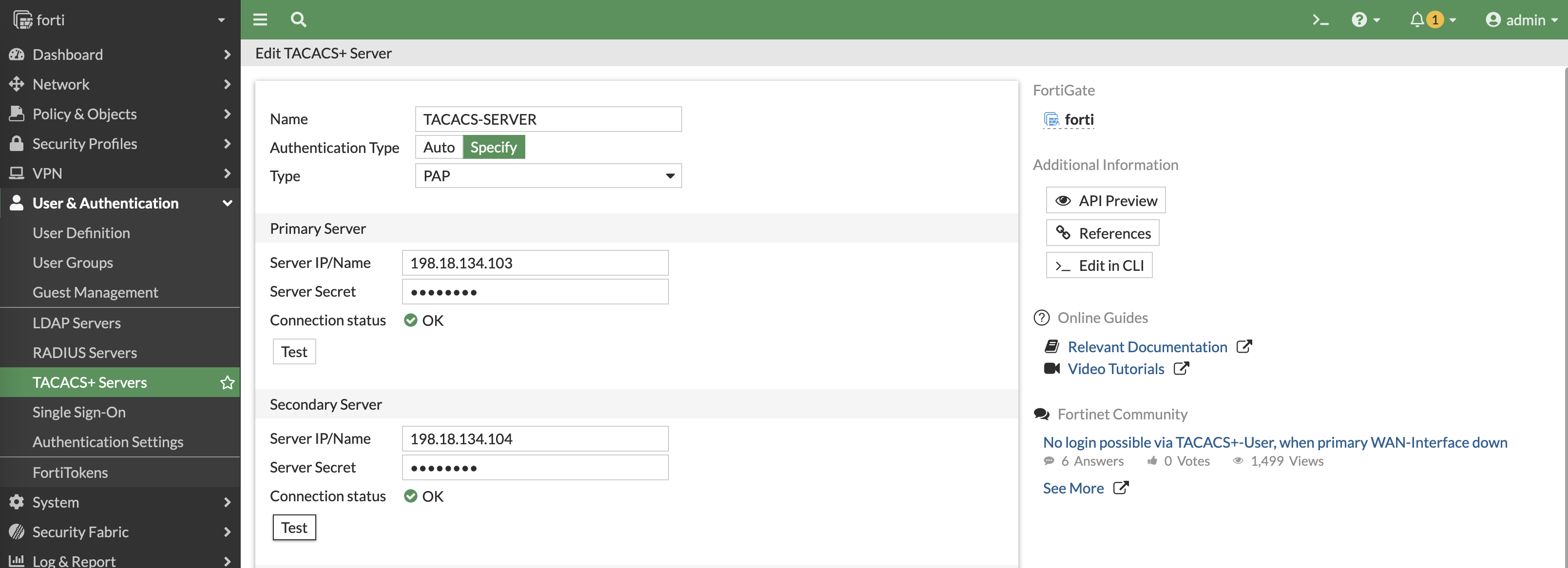 edit "TACACS-SERVER"