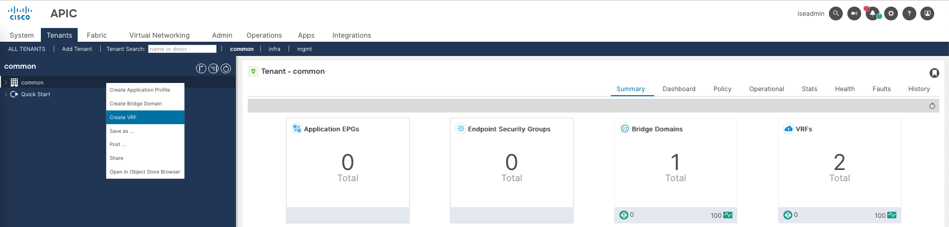 Now if we log in with iseadmin, we should be granted full access