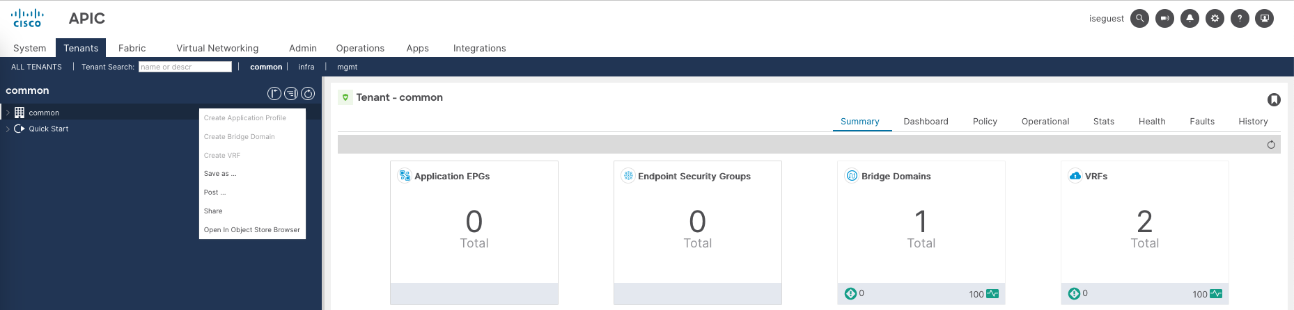 Now if we try loggin in with iseadmin, we are given full super_admin access