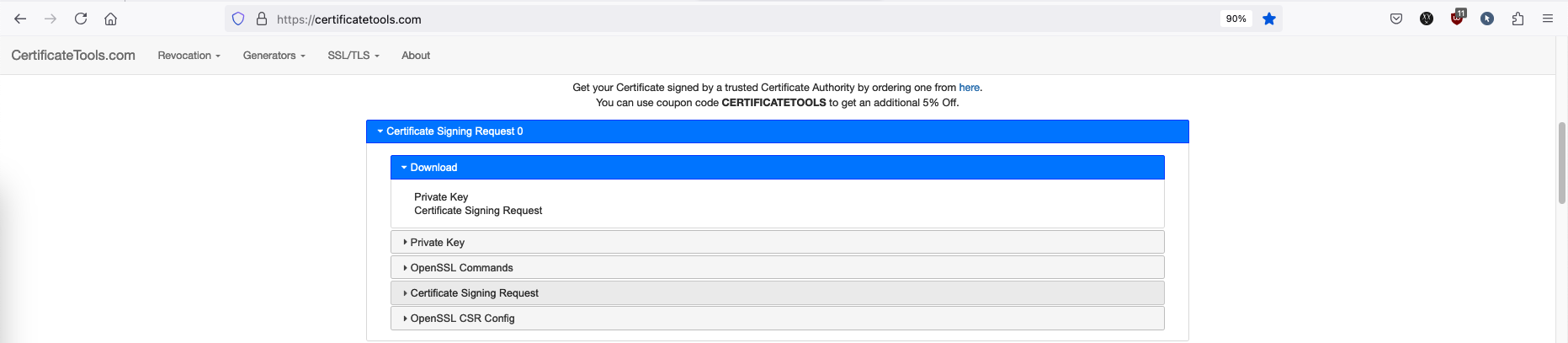 For FMC, we’re also gonna give the same type certificate, first lets create a CSR using Certtools and download the CSR & Private Key