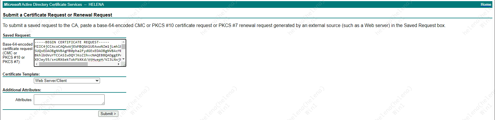 Then sign it on CA Server with Client/Server Authentication Template