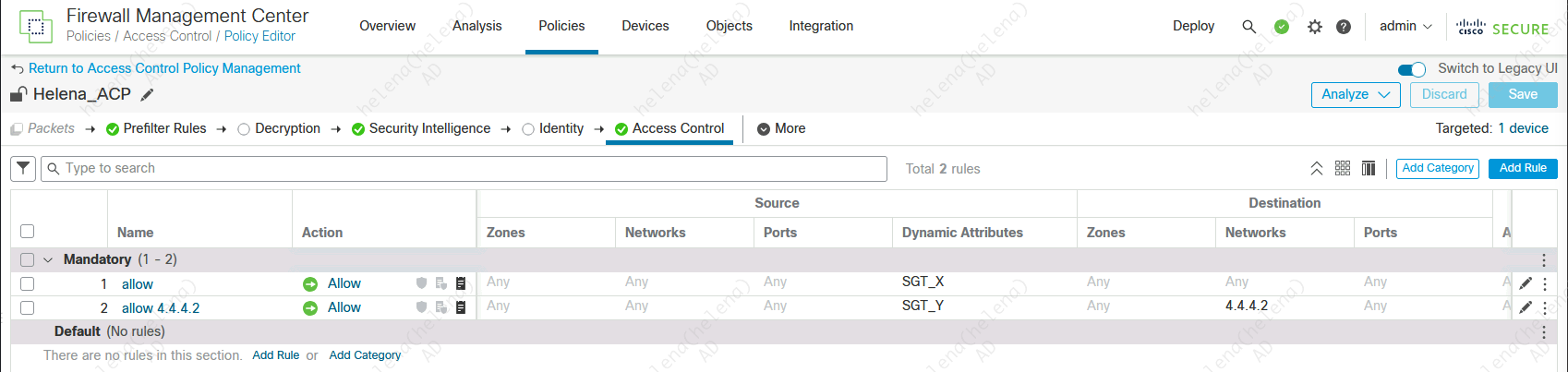 Here we create two rules, SGT_X can access anything on internet while SGT_Y can access 4.4.4.2