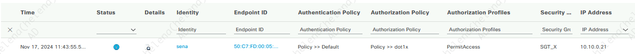 When an endpoint accesses the network, ISE will dynamically assign an SGT based on the Policy Sets rule, in this case the endpoint got SGT_X