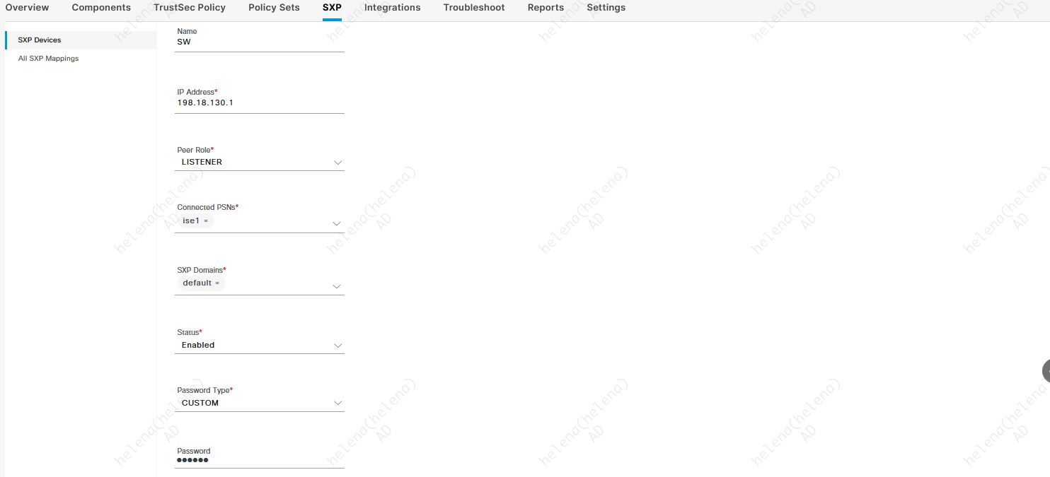 Next also add the NAD as an SXP Listener Device so it will get updates about our SGT Mappings