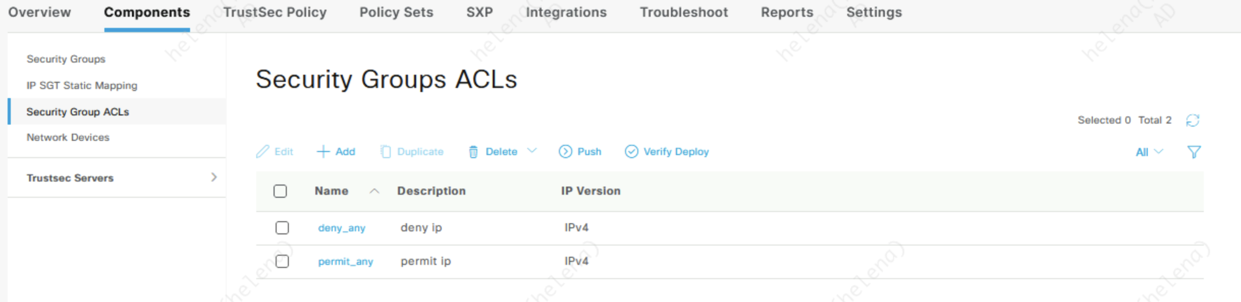 Next create two SGACL, one for permit access and the other for deny access