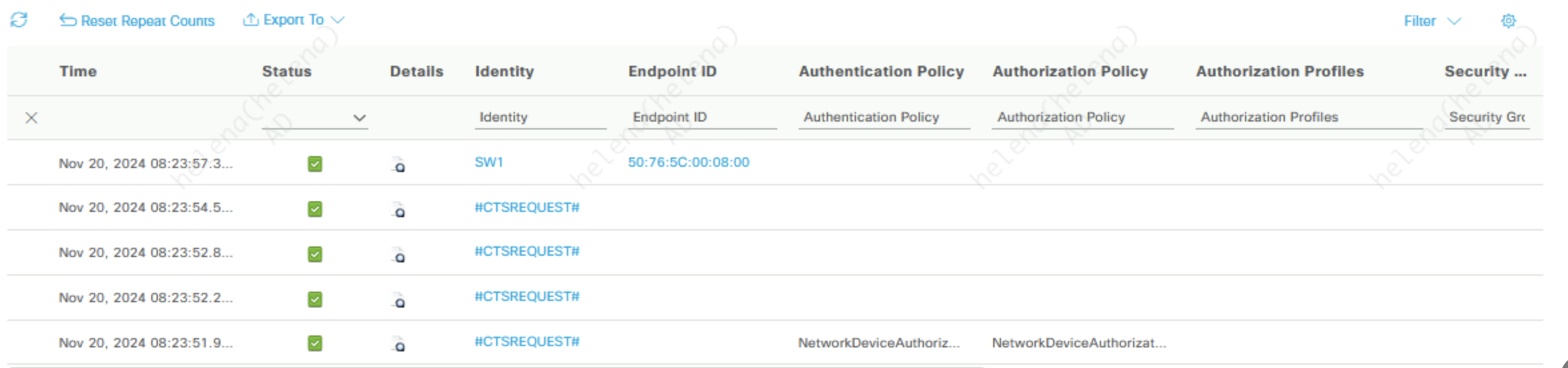 After config has been applied, NAD will start doing CTS authentication that we can see on Radius Logs