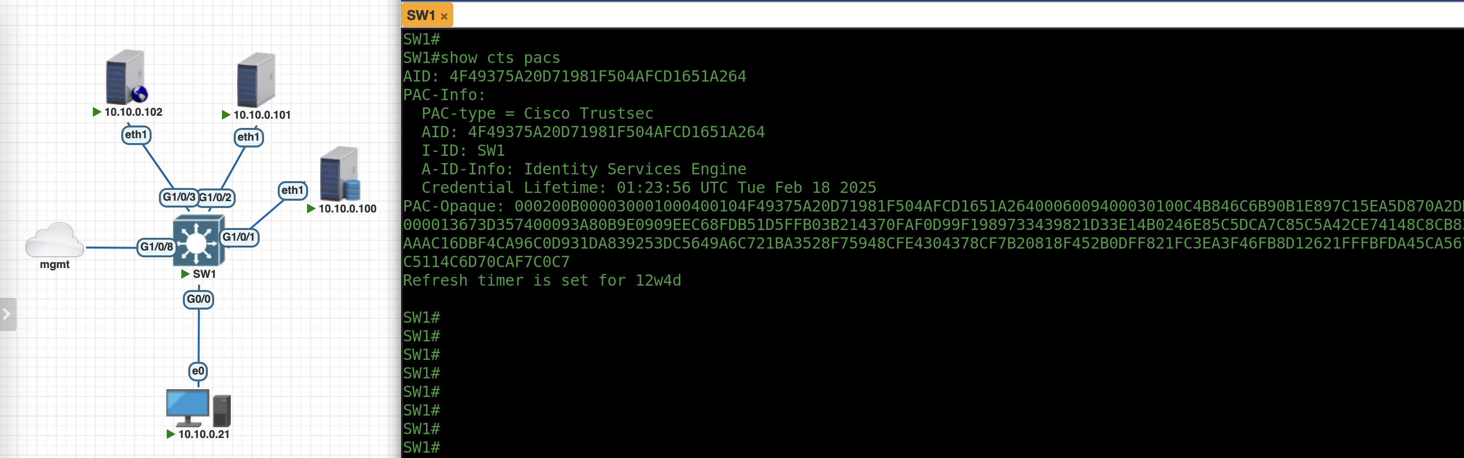 Running “show cts pacs” confirms this process has been complete