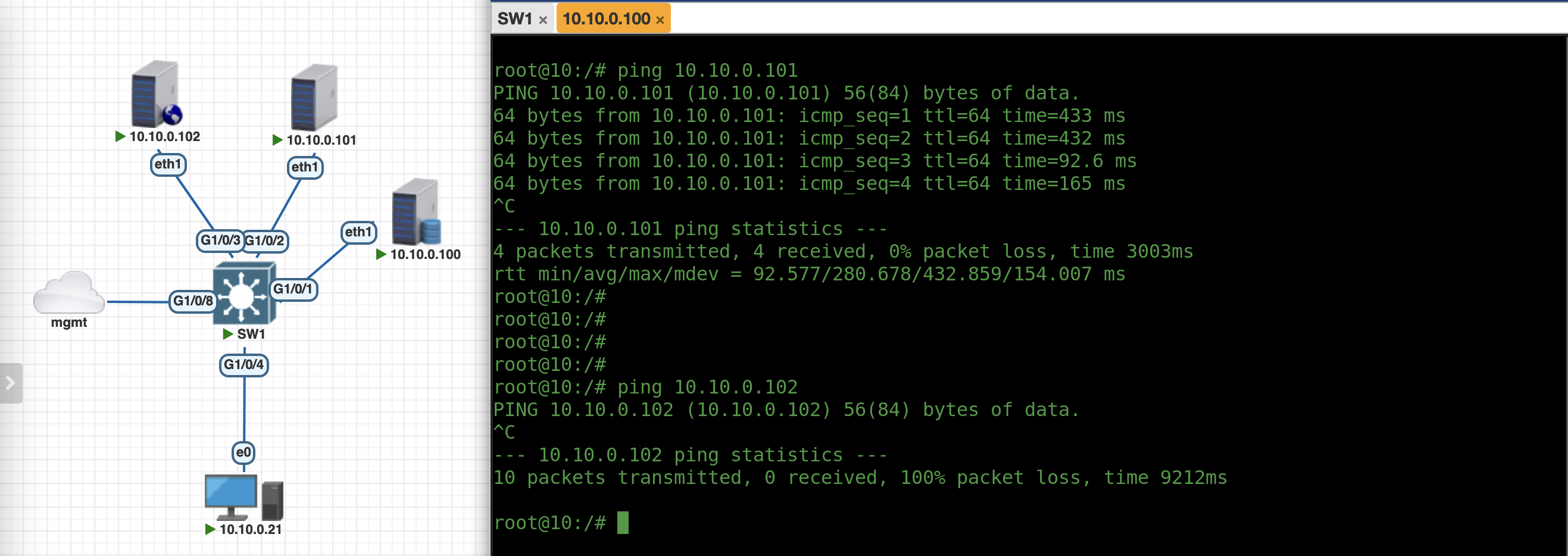 And now the .100 client can still ping or access any port on .102, except for port 443