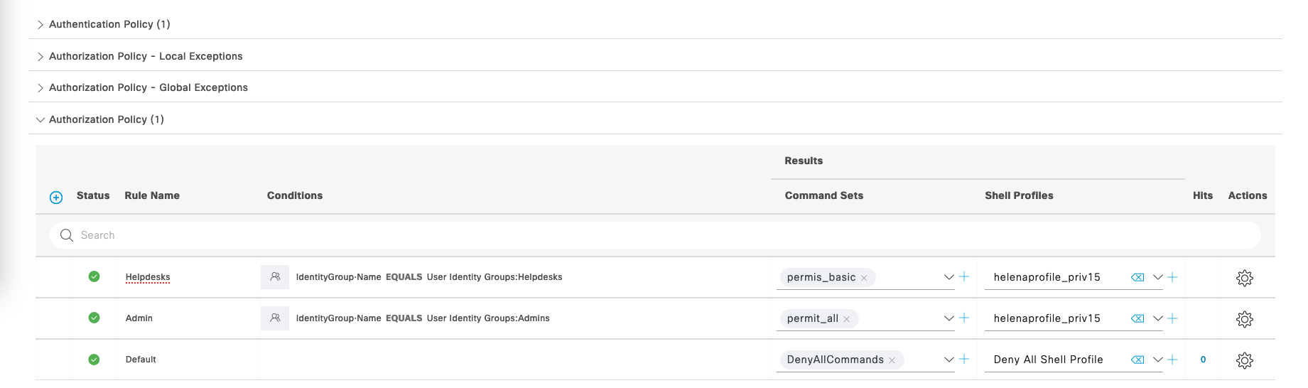Next on Authorization Policy, we’ll make 2 policies for Helpdesks to have access to limited command sets and Admins with full command sets access