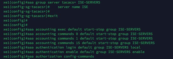 aaa authorization exec default group ISE-SERVERS local if-authenticated