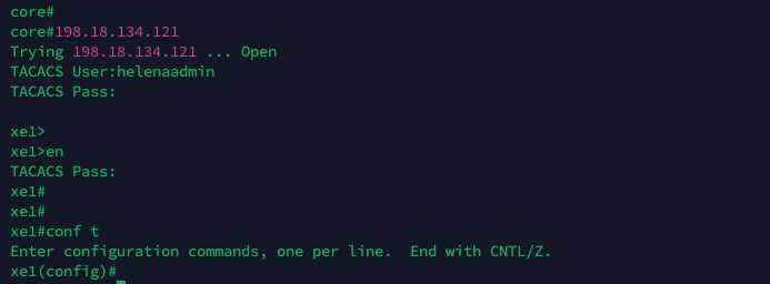 Now if try logging in to the router, we’ll be greeted by the TACACS authentication