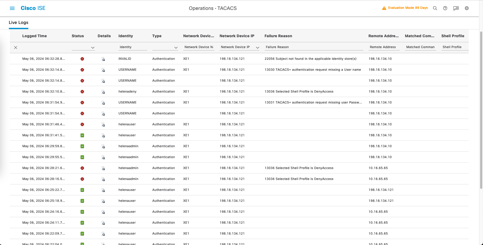 And on TACACS Live Logs, we can see the logs of the users logging in to the router