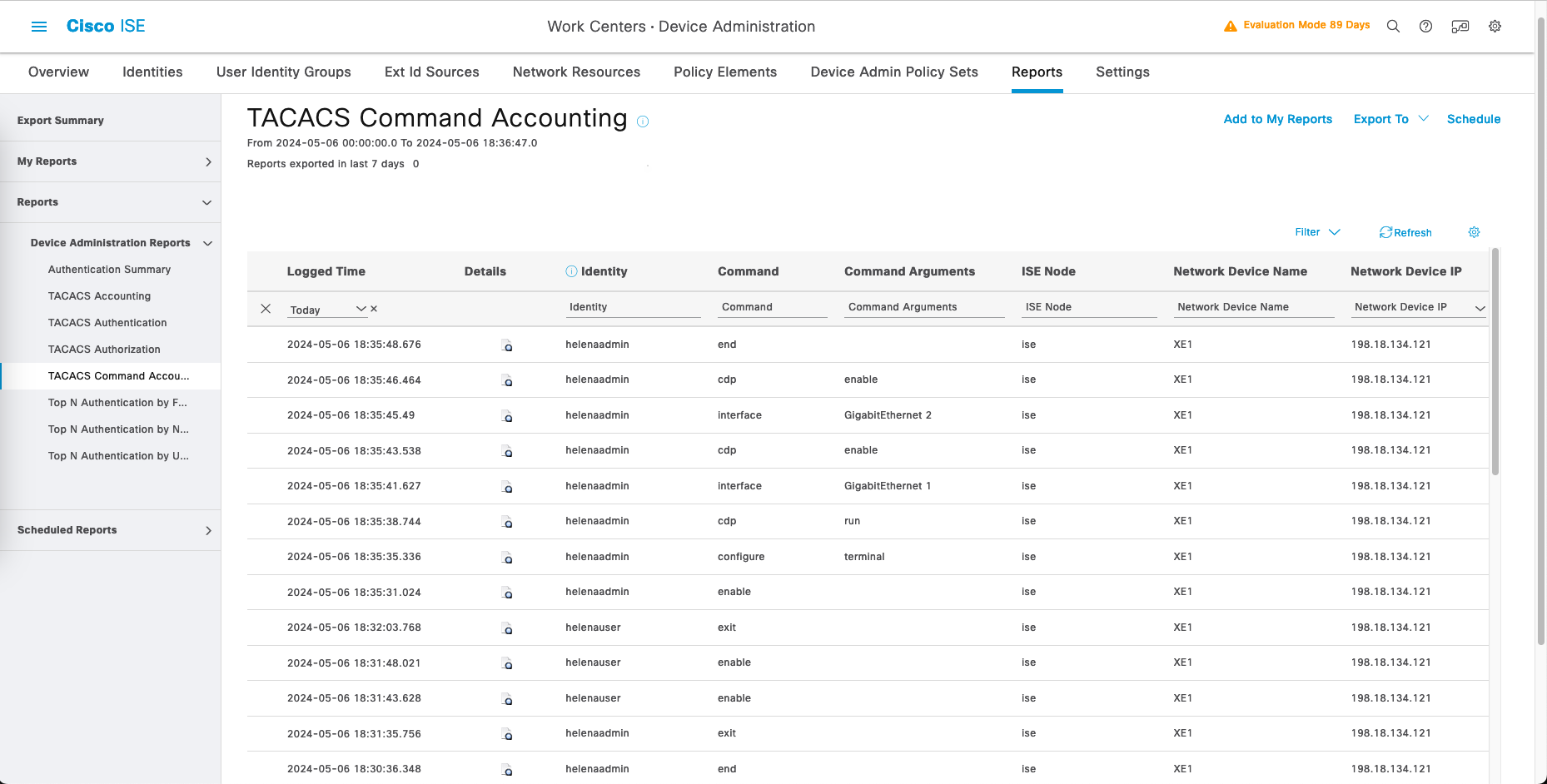 And on TACACS Command Accounting, we can also see all the commands executed by the users