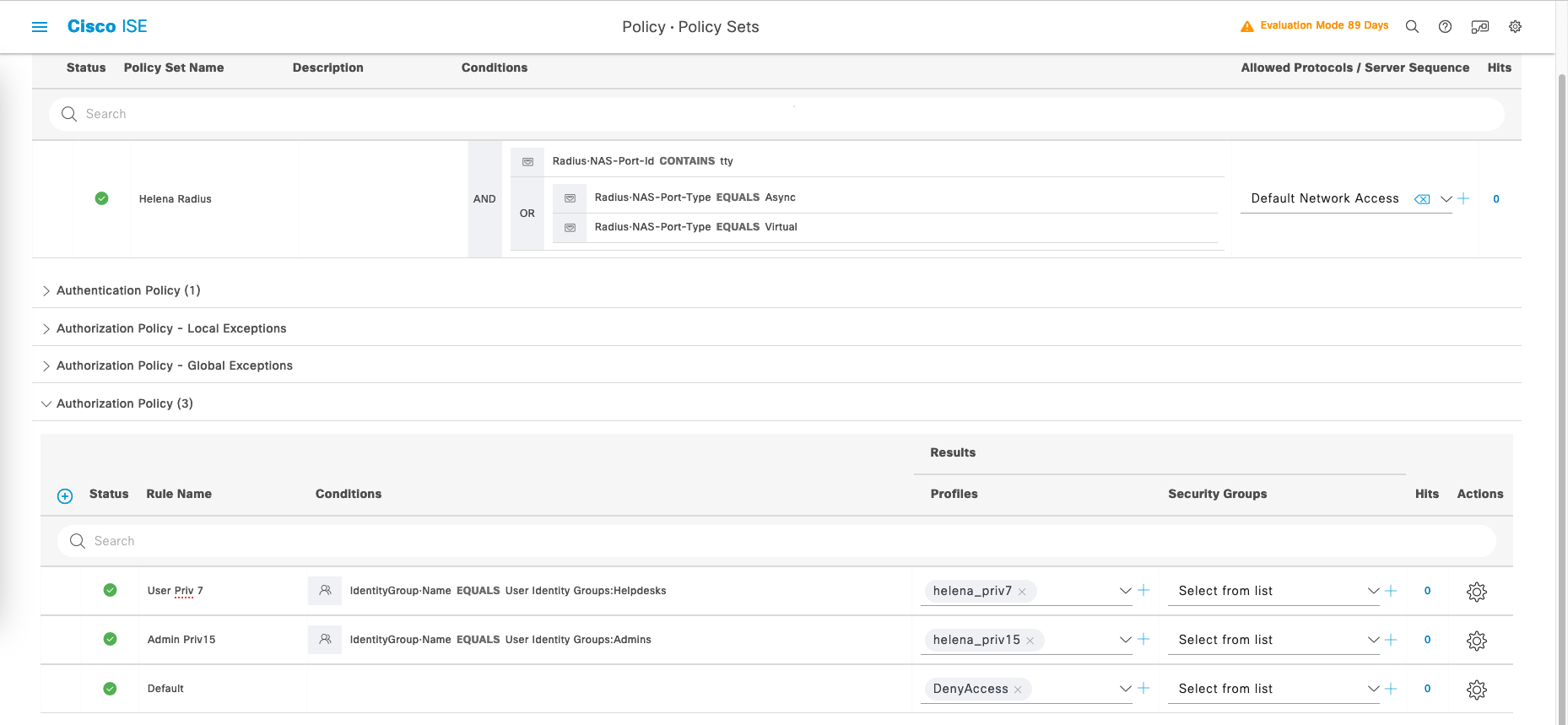 Then for Authorization Policy, create policies for Helpdesks to have level 7 privilege access and Admins to have level 15 privilege access