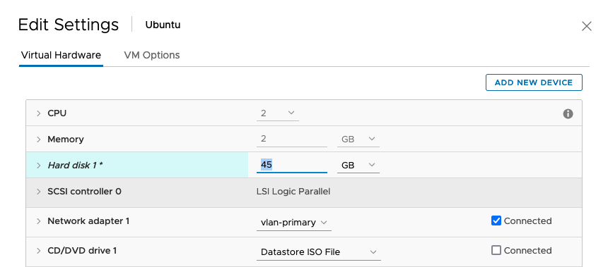Now we’re extending the existing disk from 30GB to 45GB