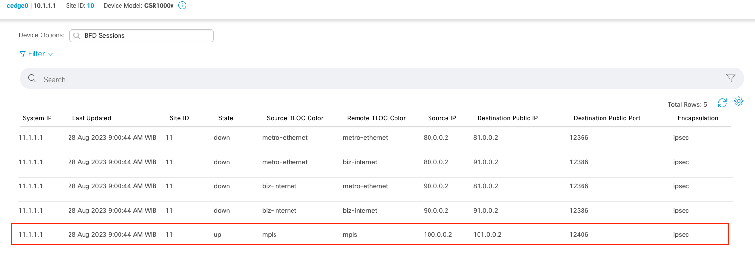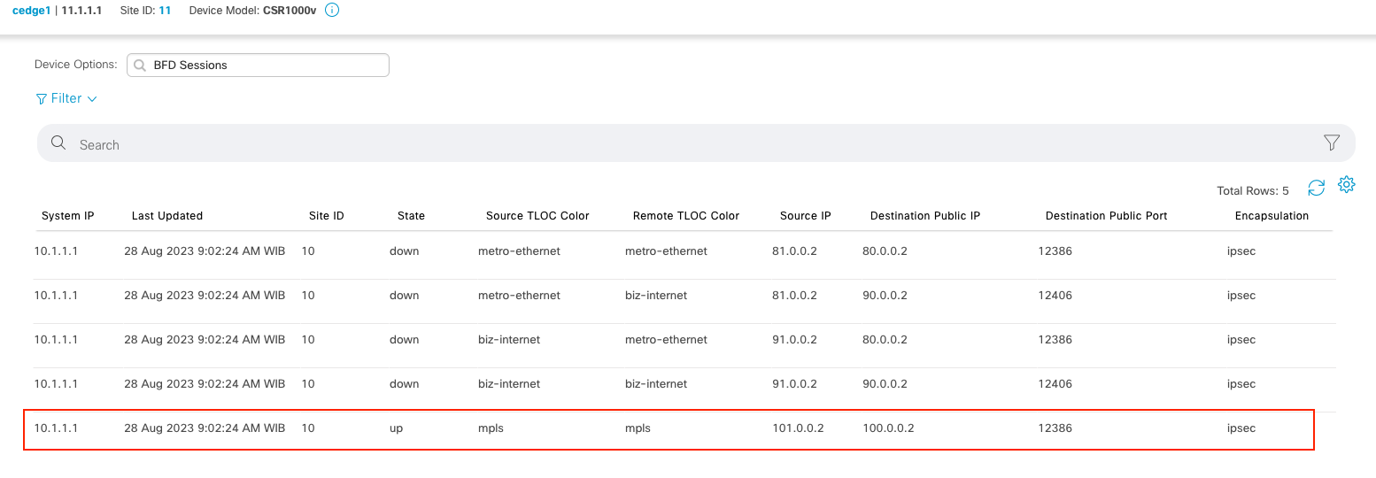 And for Customer 1, because these are SD-WAN edges, all we need to check is its BFD Connectivity on vManage