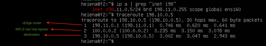 And now for Customer 2, if we do an end-to-end tracing from CE0 to CE1 and vice versa, we should see the traffic being routed through MPLS network