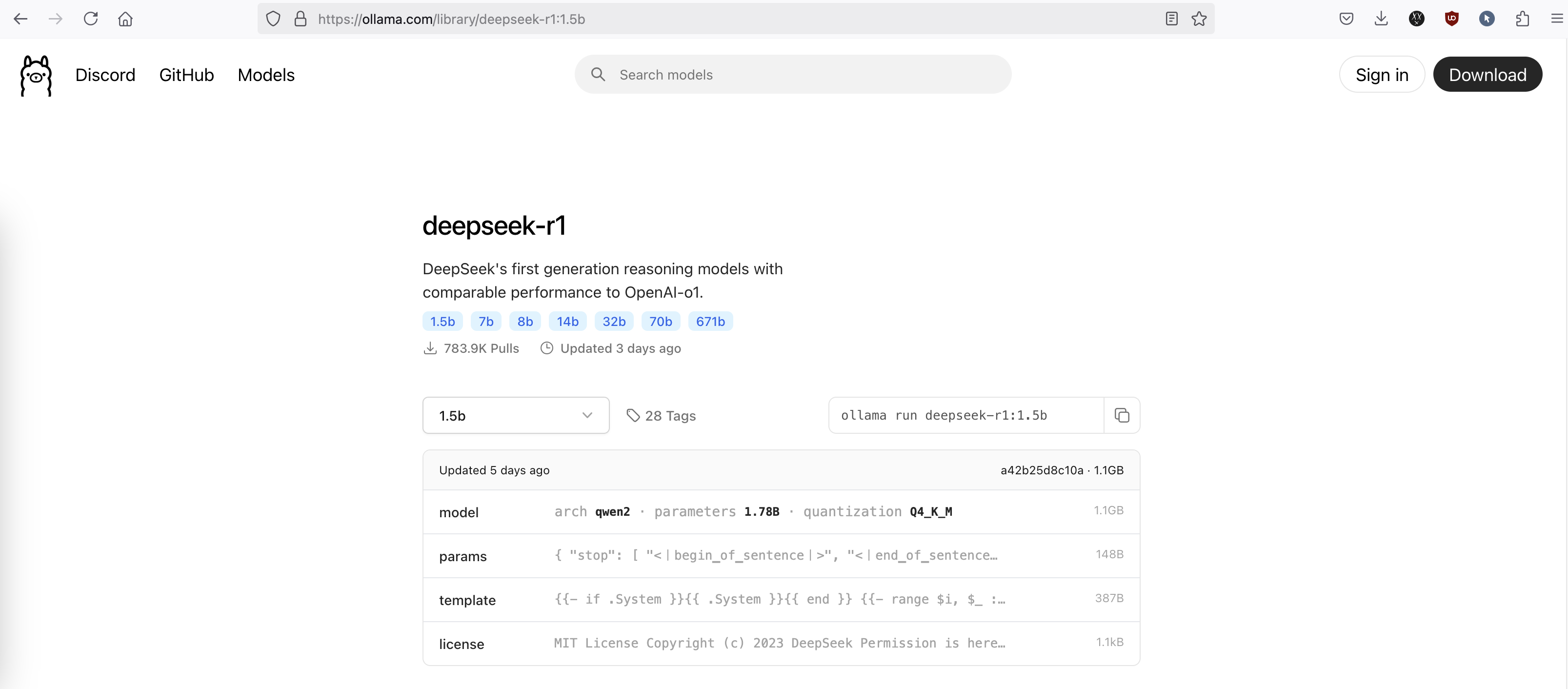 Run the “ollama run deepseek-r1:1.5b” on the server to pull the 1.5b model