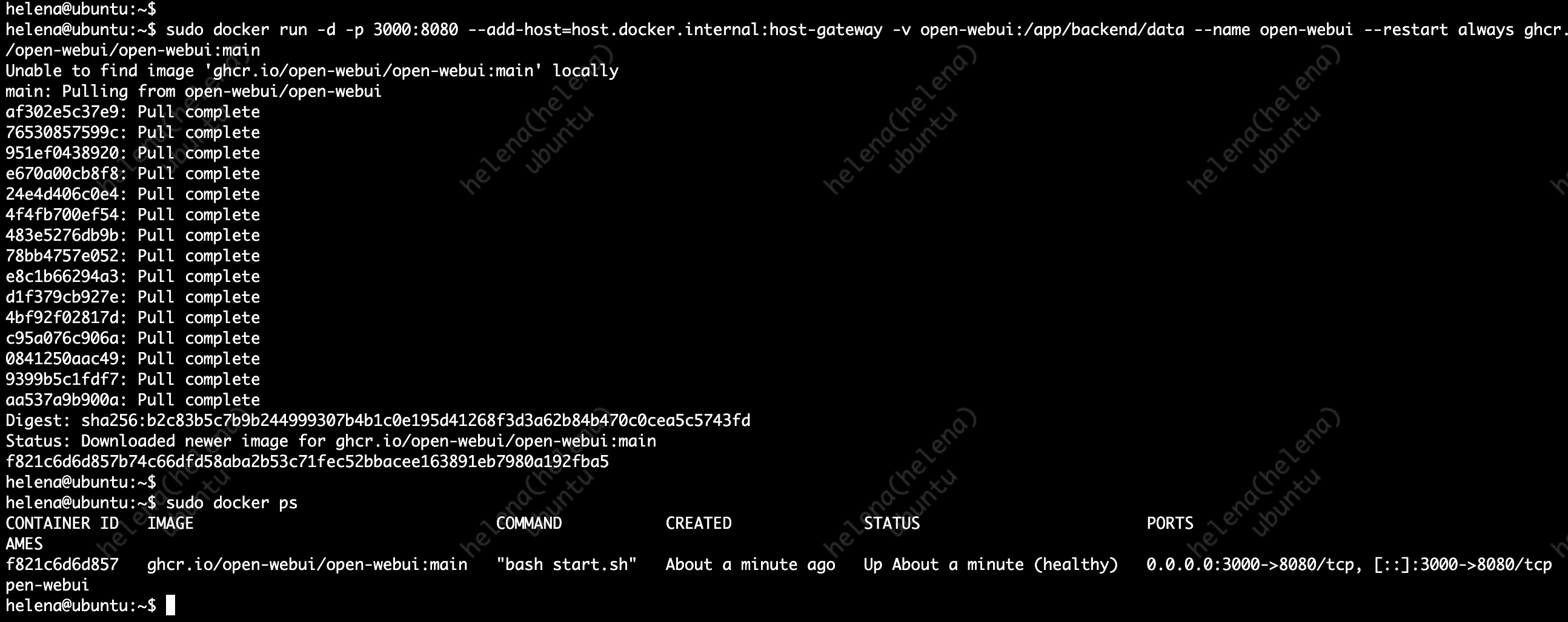 Then open the Open WebUI github page and copy the docker command to pull it onto the local machine
