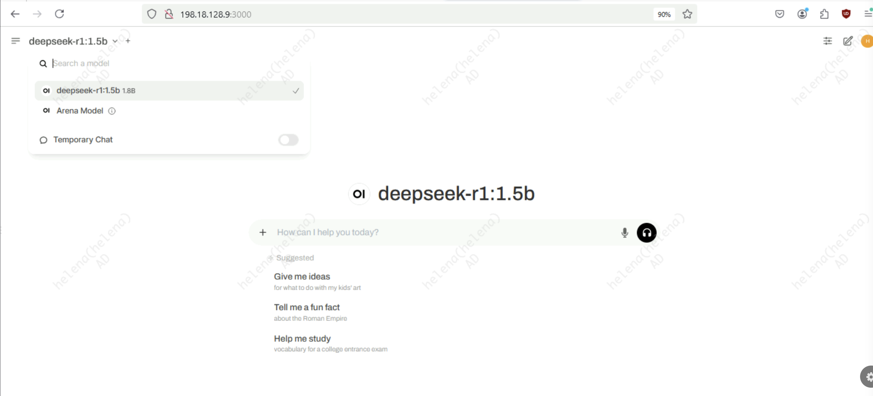 Now we can access Open WebUI on port 3000 and select Deepseek as the model