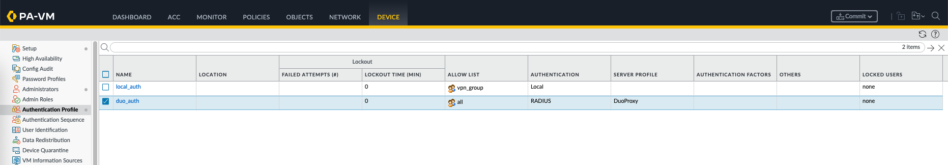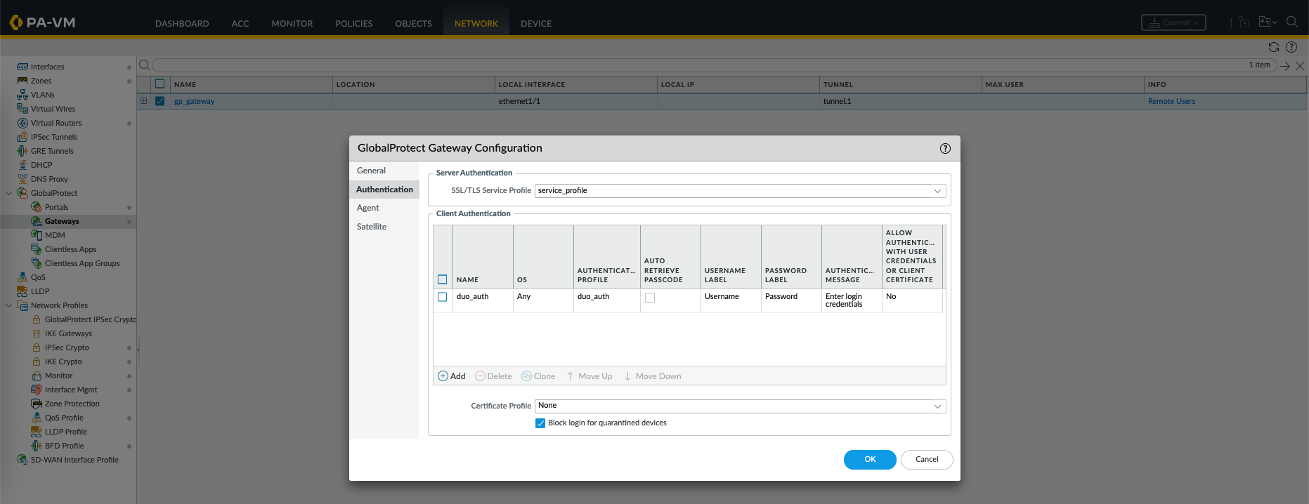 Then create a new Authentication Profile that uses the newly created Duo Proxy Server Profile