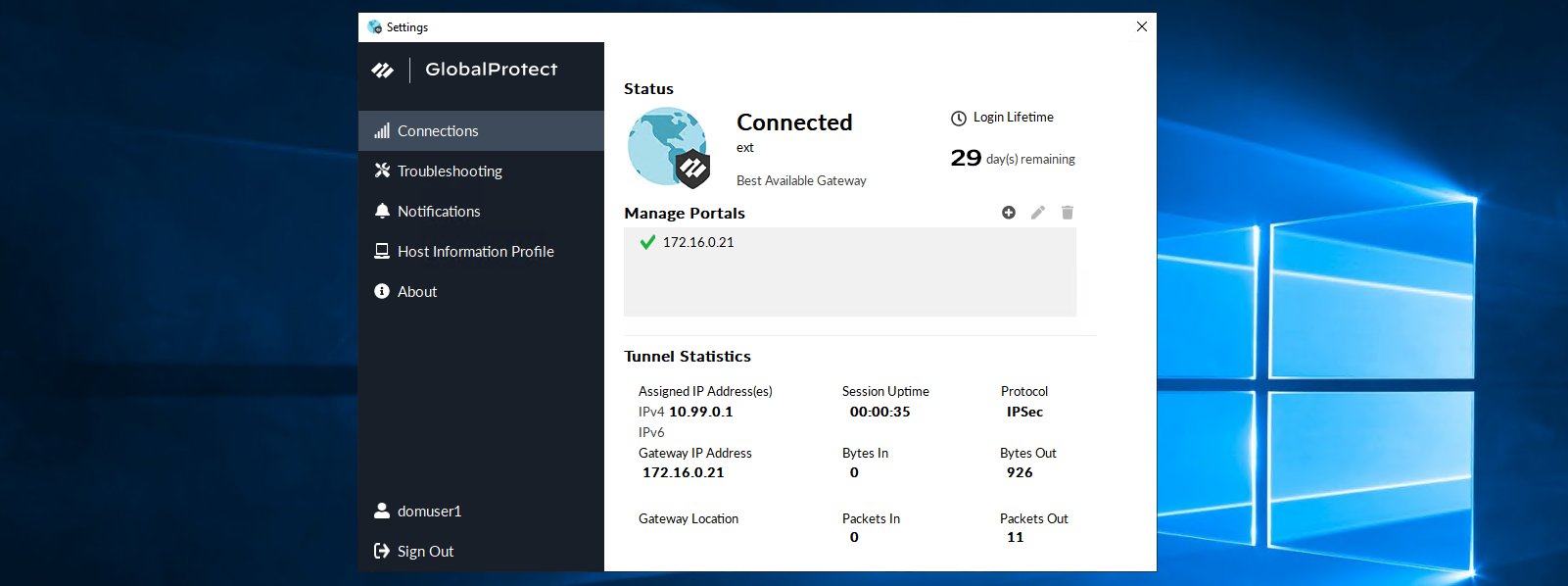 Here we have a working Global Protect SSL VPN using local users to log in