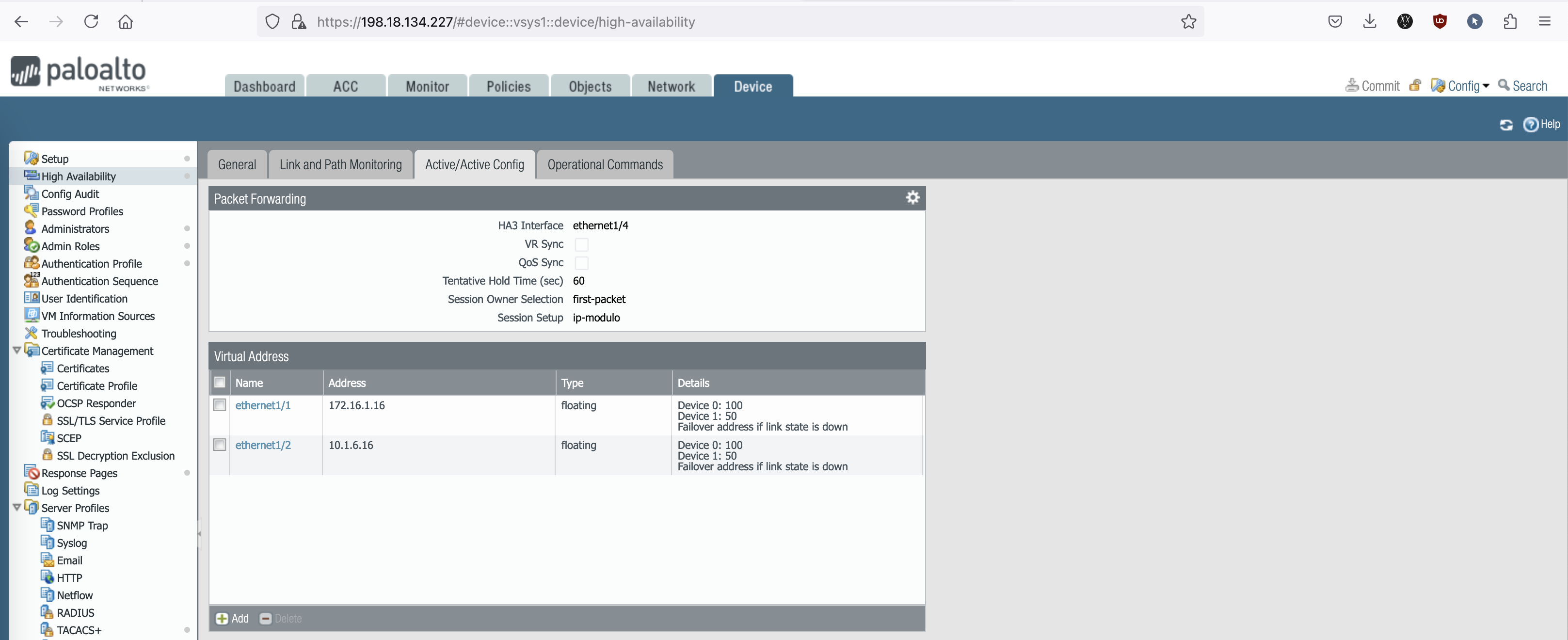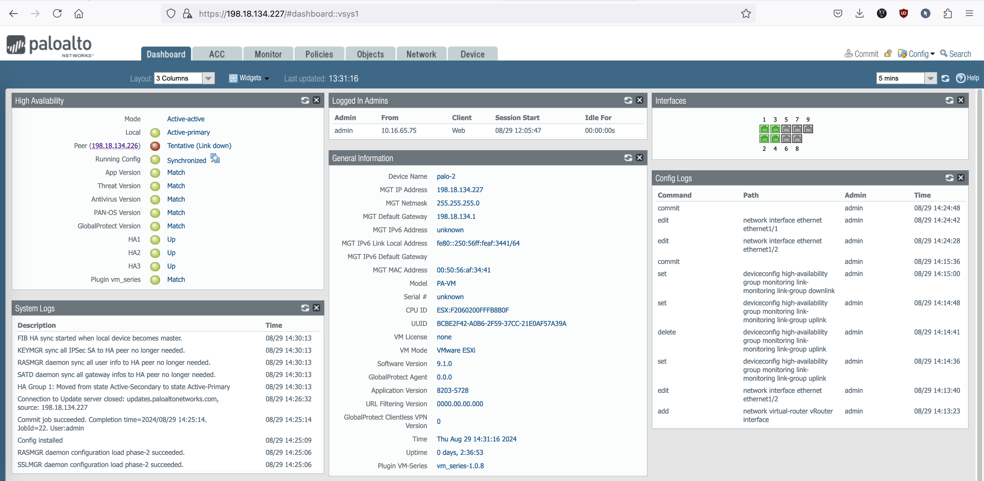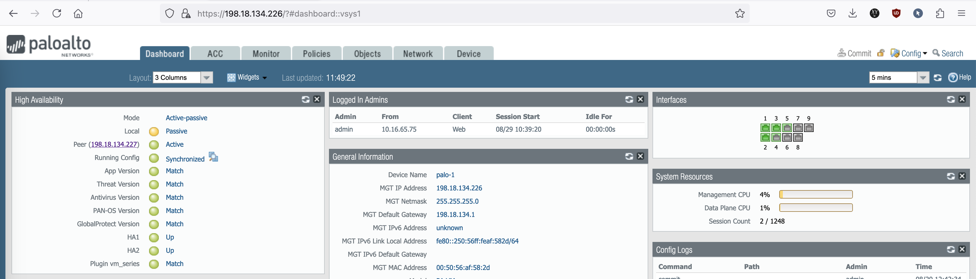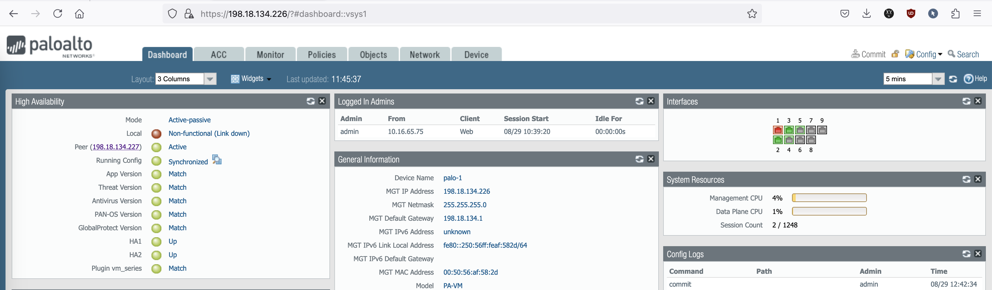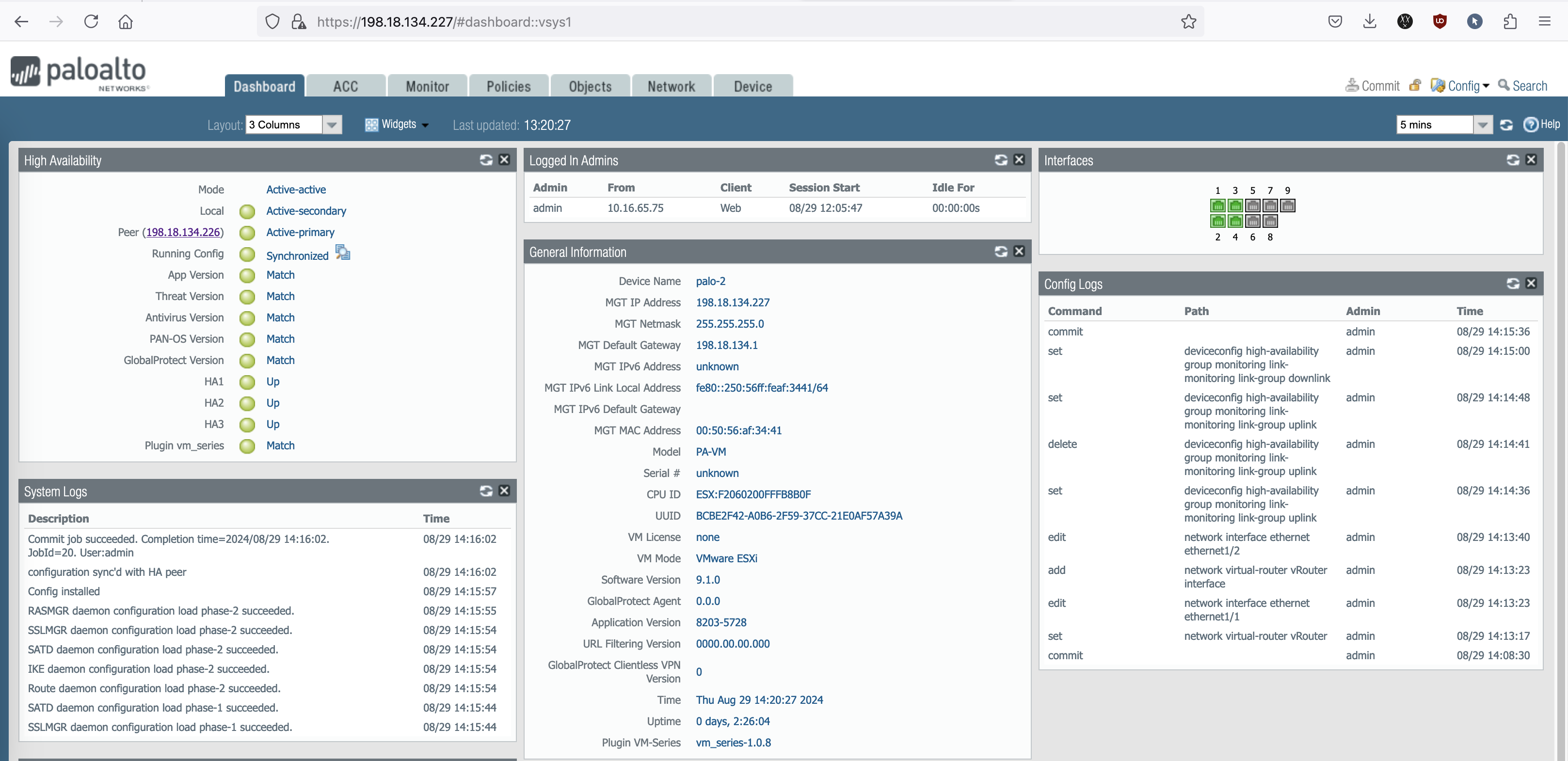 And on Palo-2, all the Palo-1’s configurations is synced to this node, including the IP Address configurations