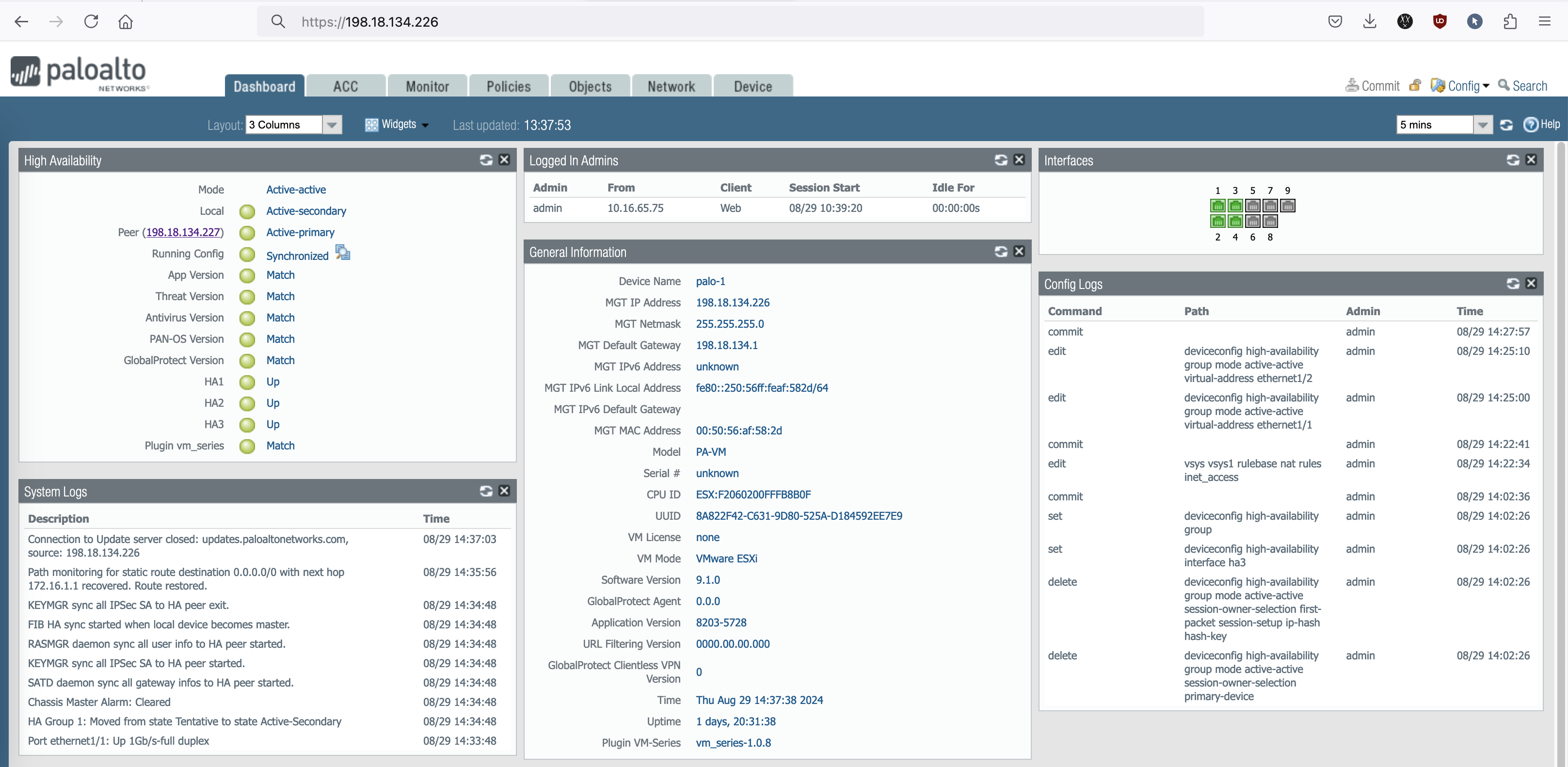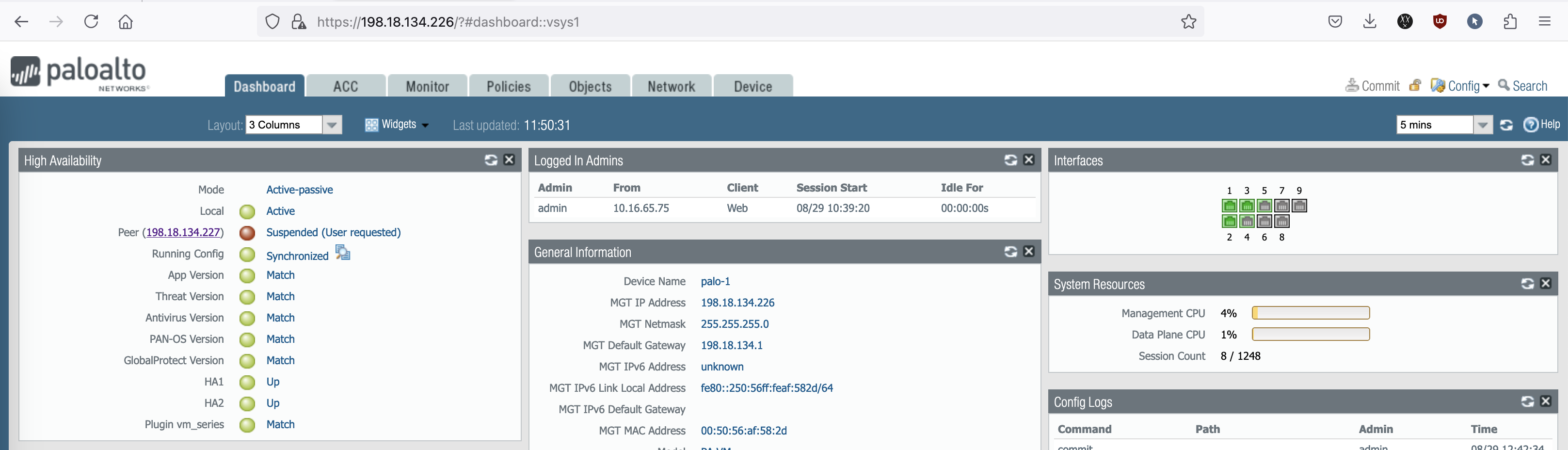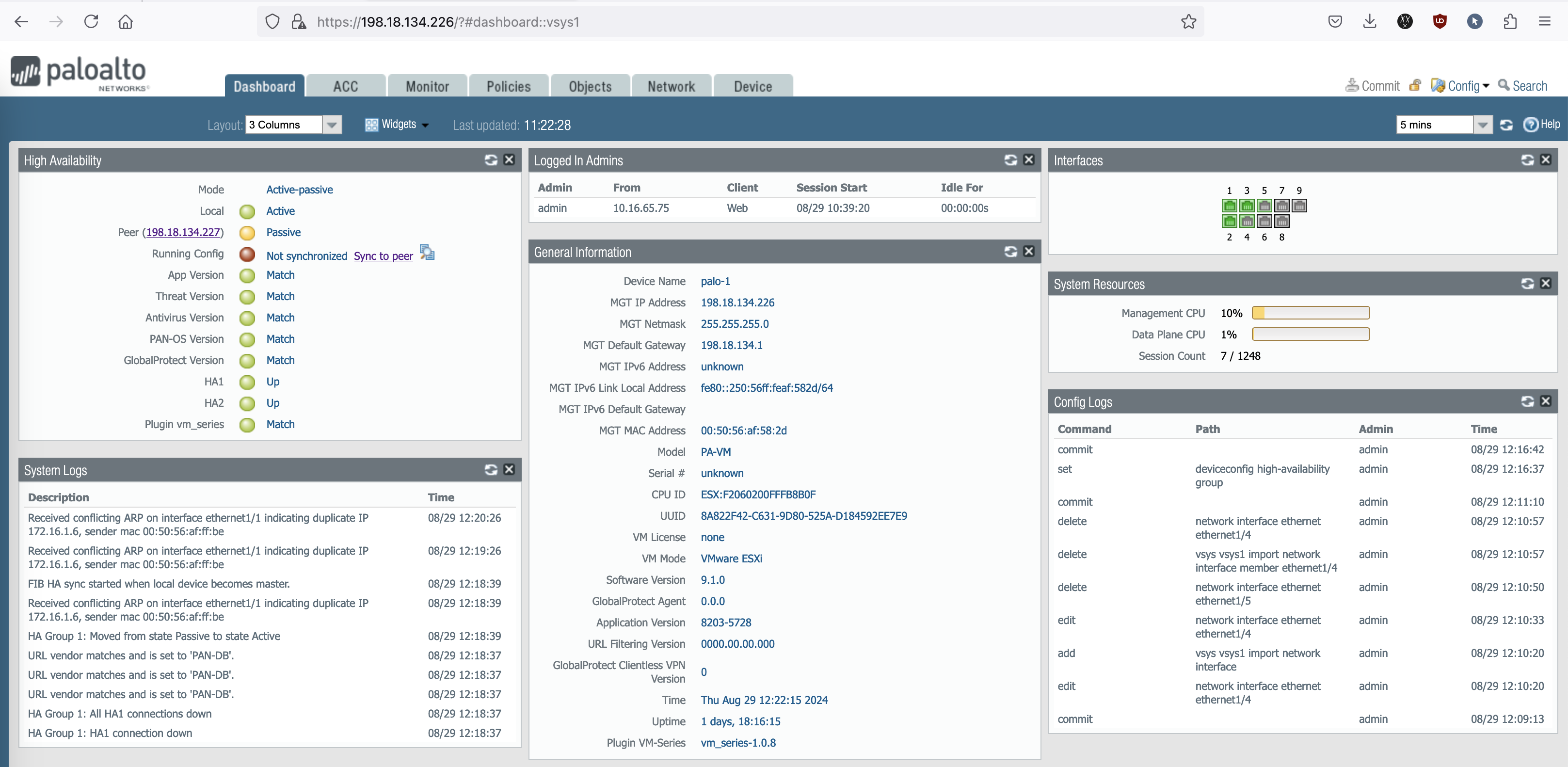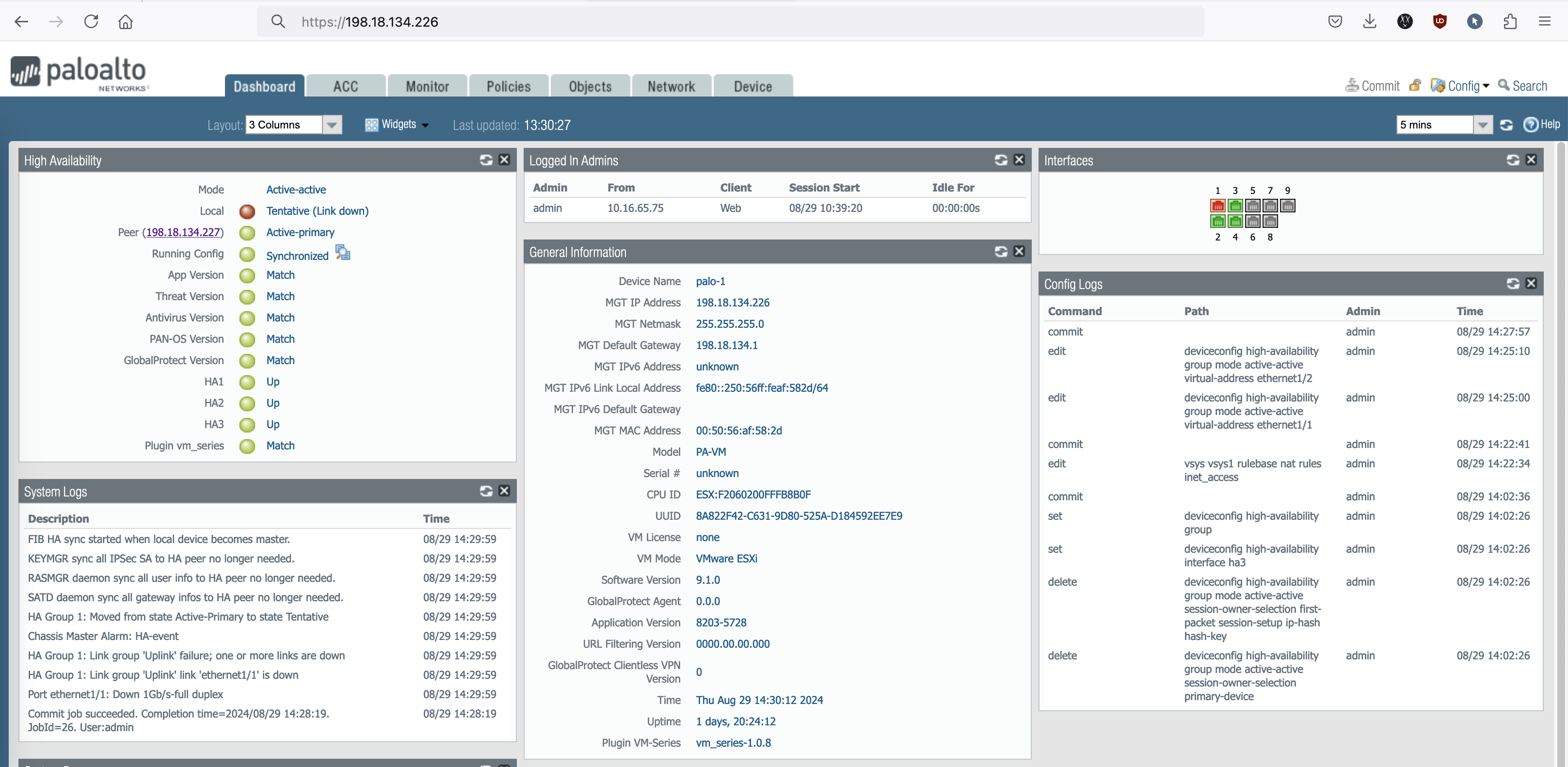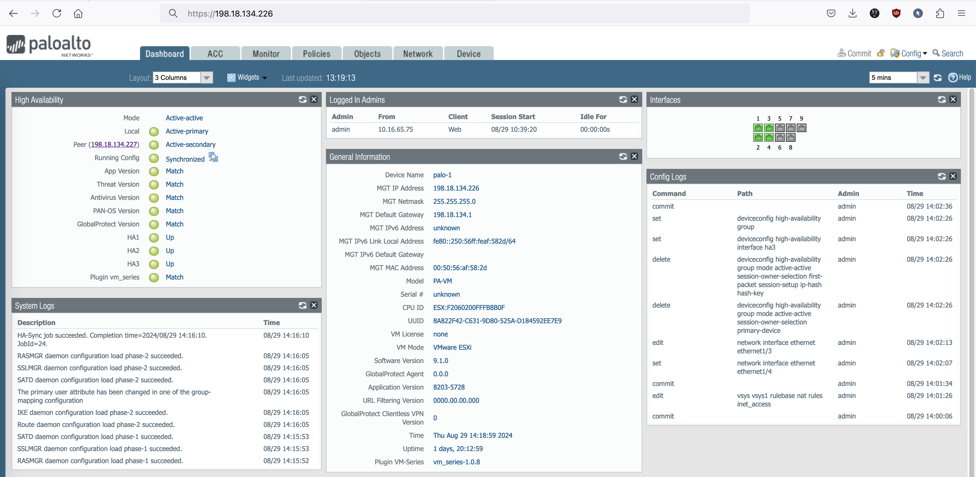 And on Palo-2, all the Palo-1’s configurations is synced to this node, including the IP Address configurations