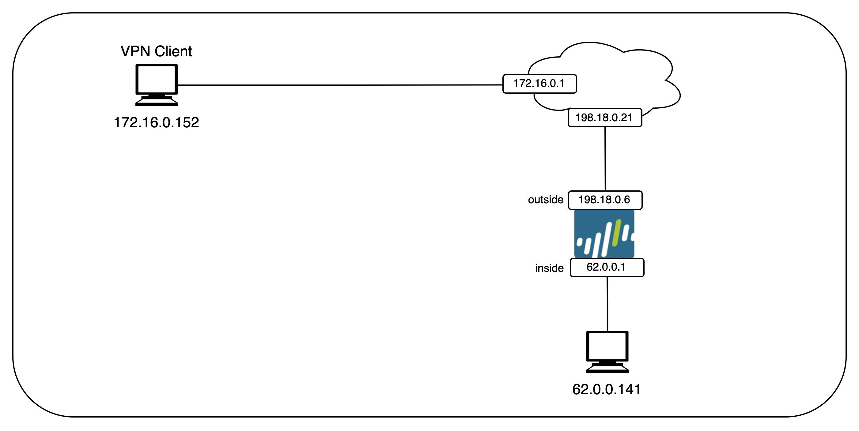 Here’s the connection topology, where PC on the internet will become the VPN client to connect to the inside network