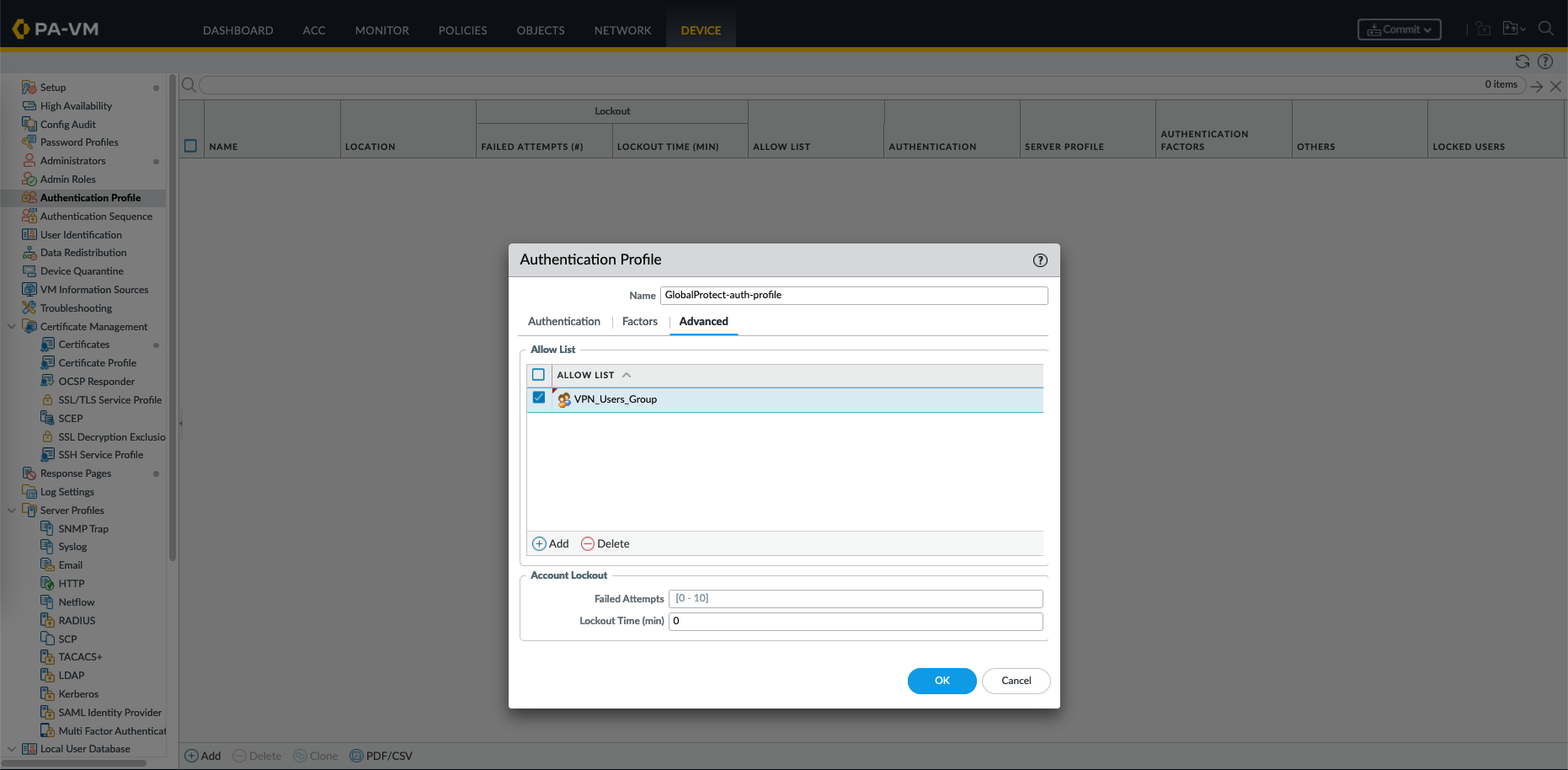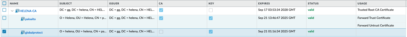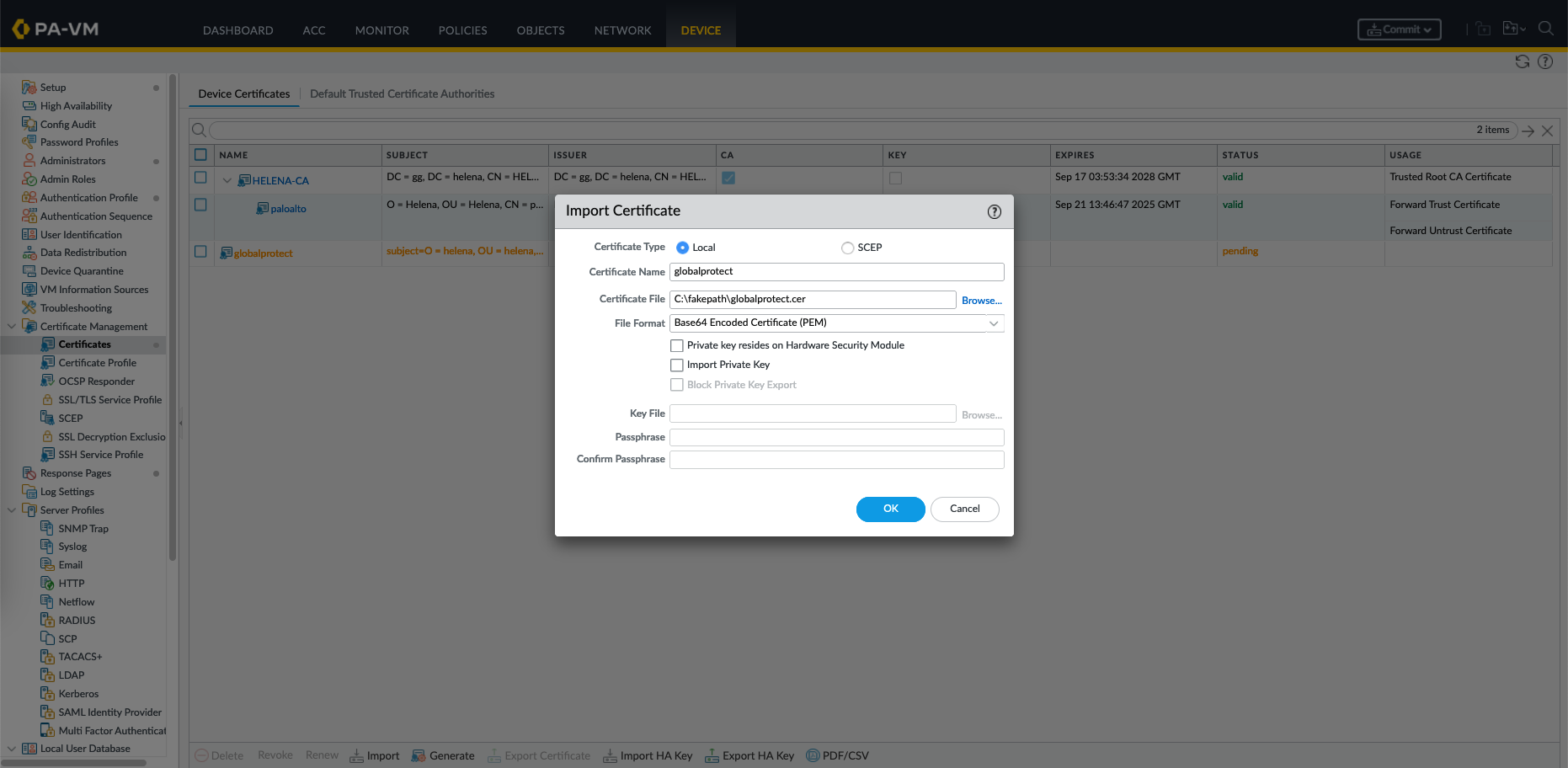 On Device » SSL/TLS Service Profile, add new, select the newly created certificate
