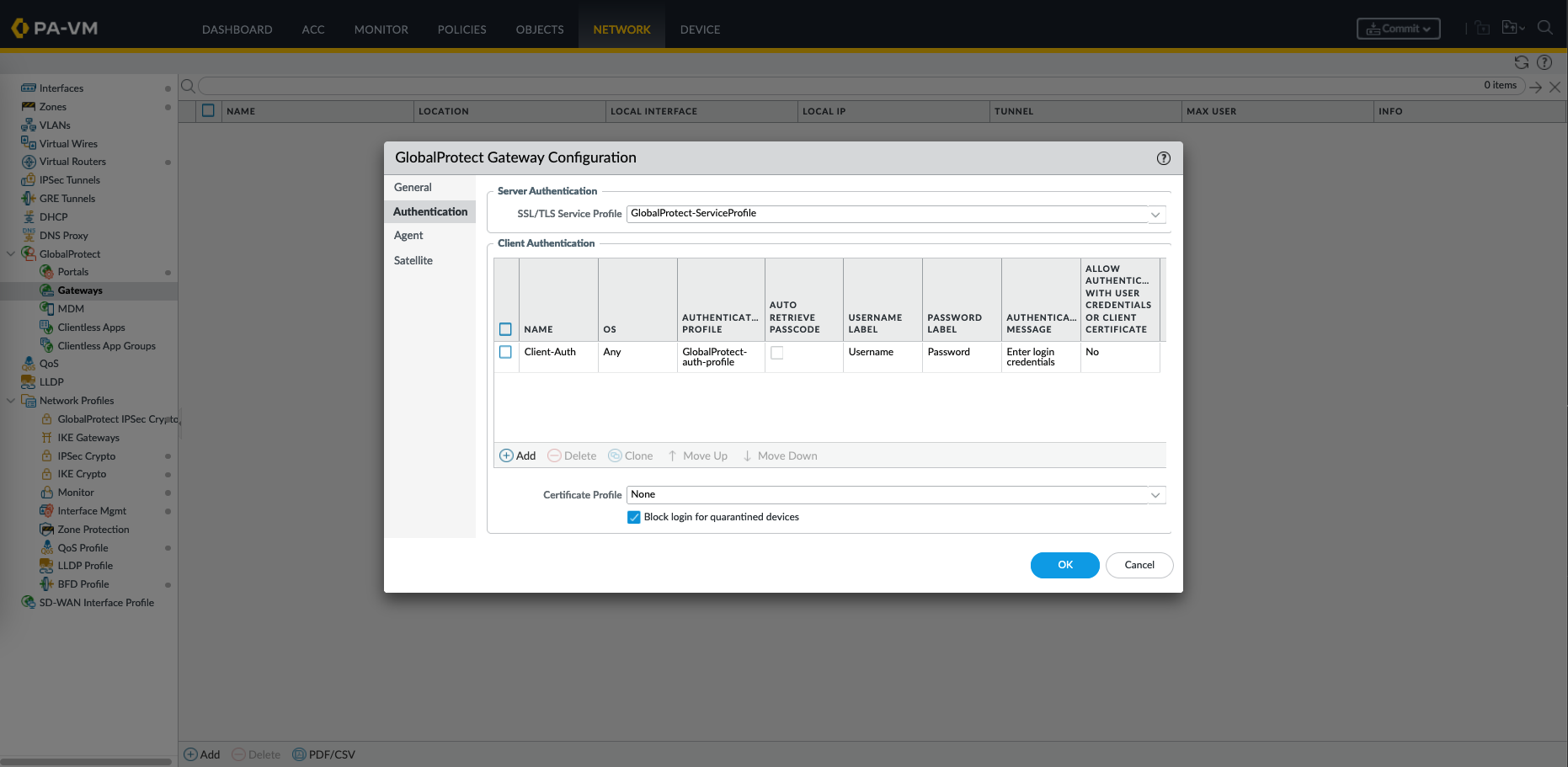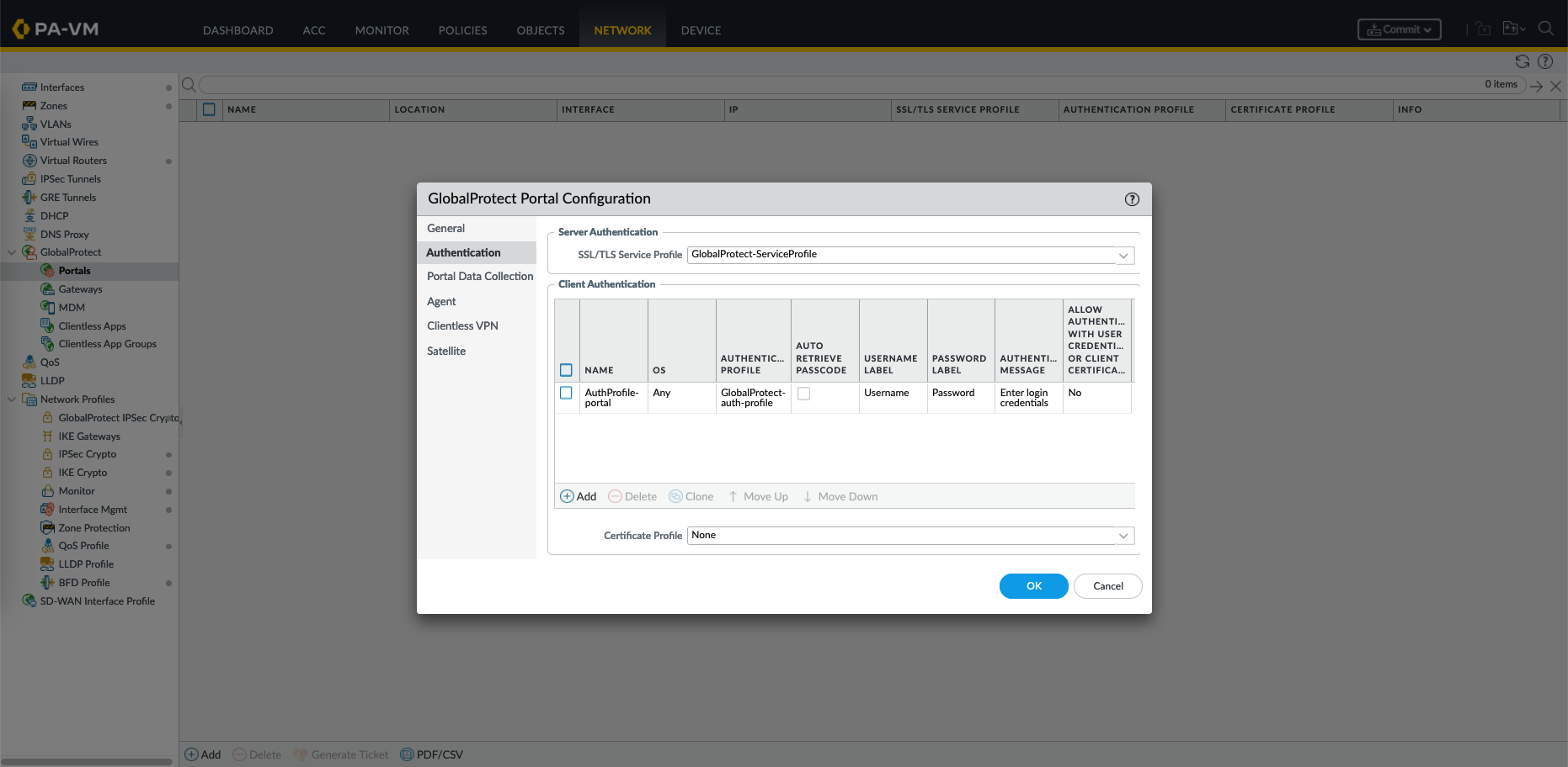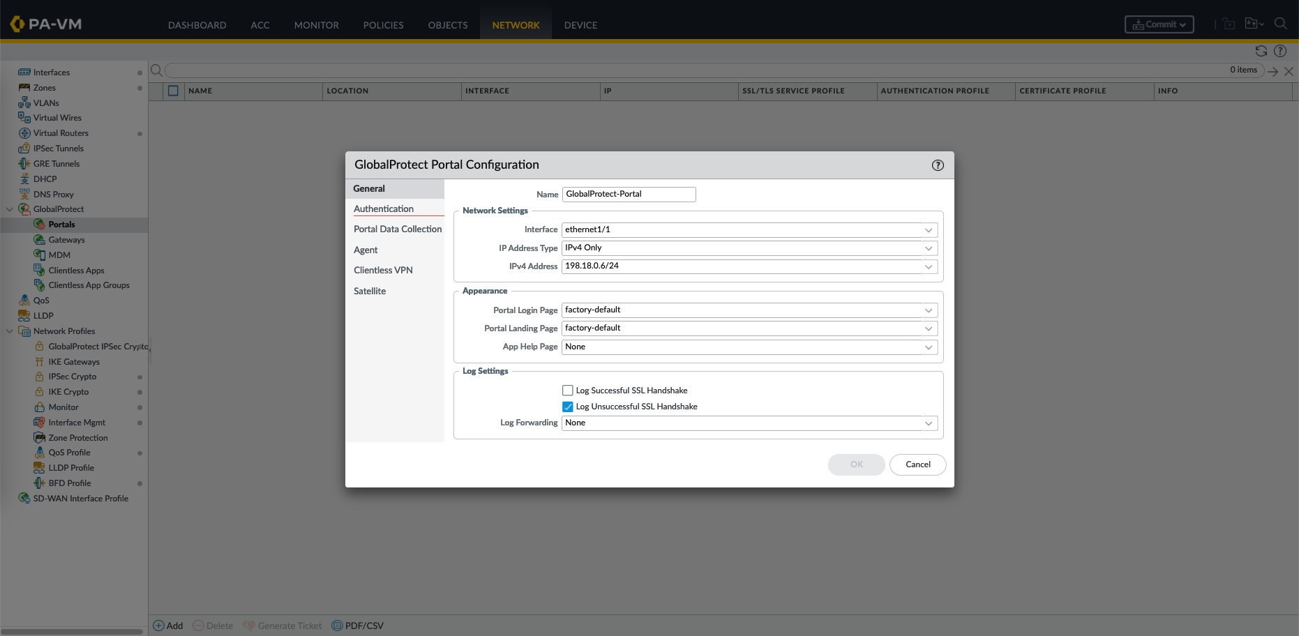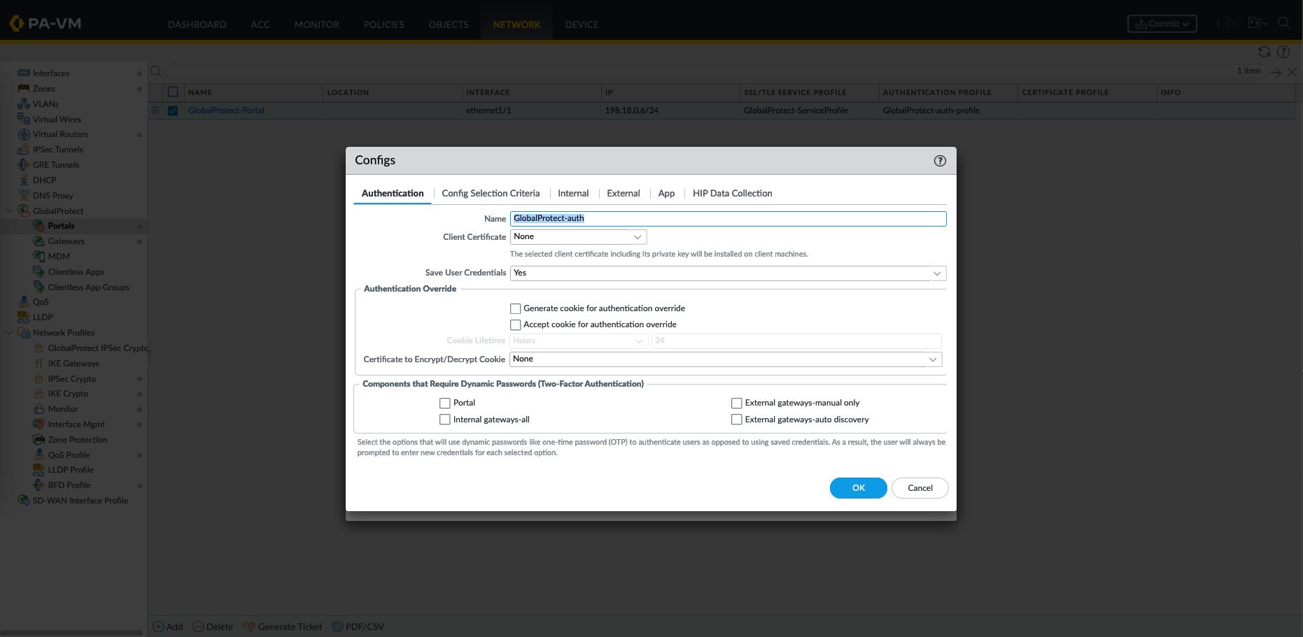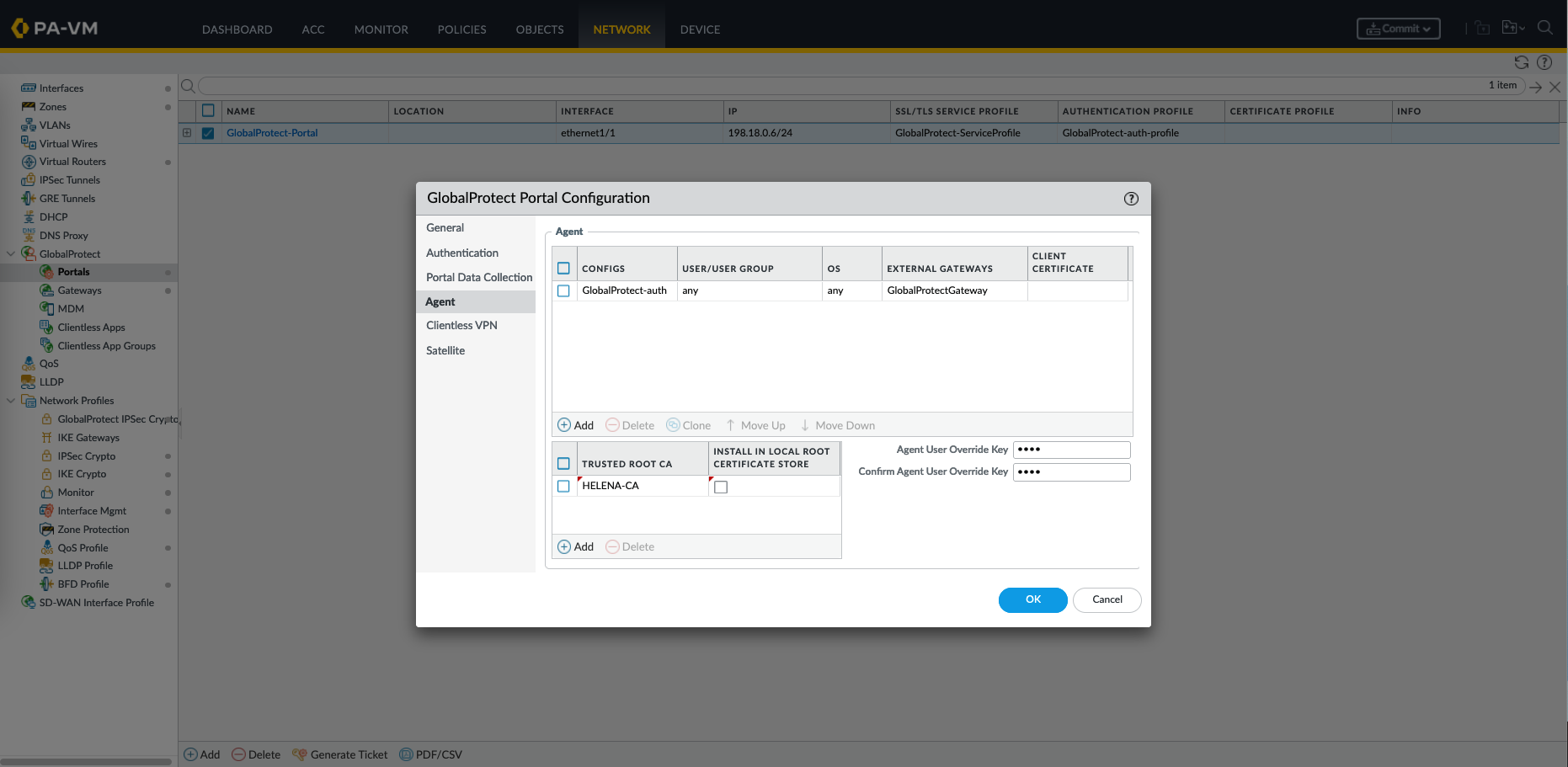 On Network » Global Protect » Portals, select the Portal and open the Agents