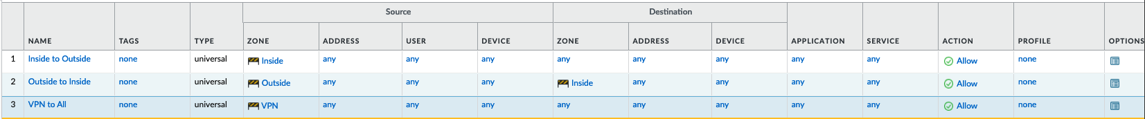 And peeking at the traffic, we can also see the traffic coming from Zone VPN to Inside