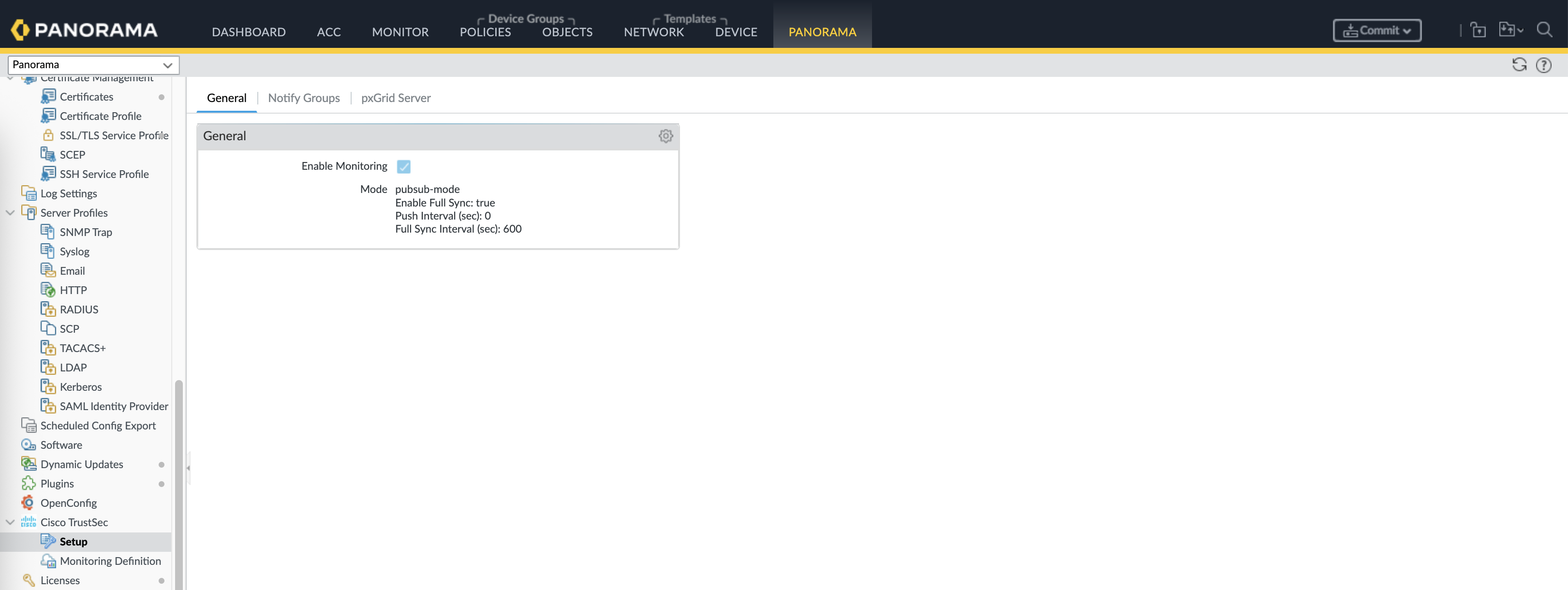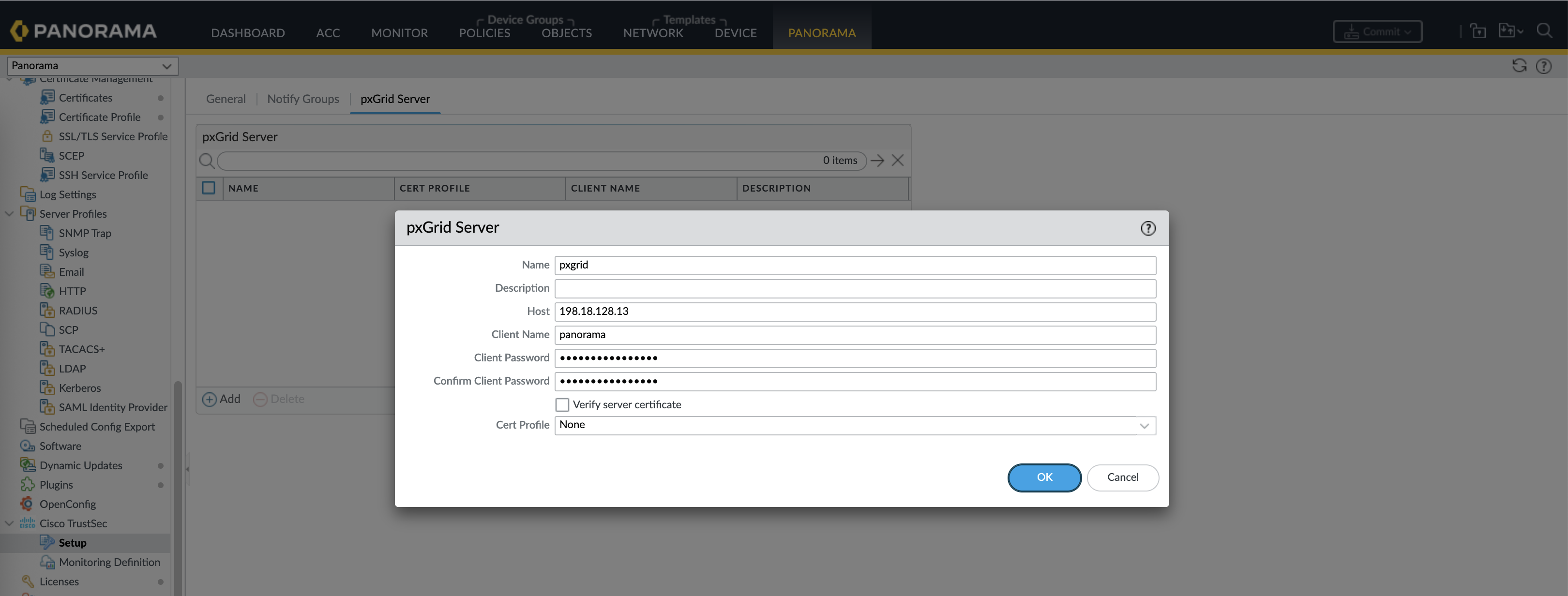 Next continuing the panorama configuration, add the PxGrid server with the generated credential