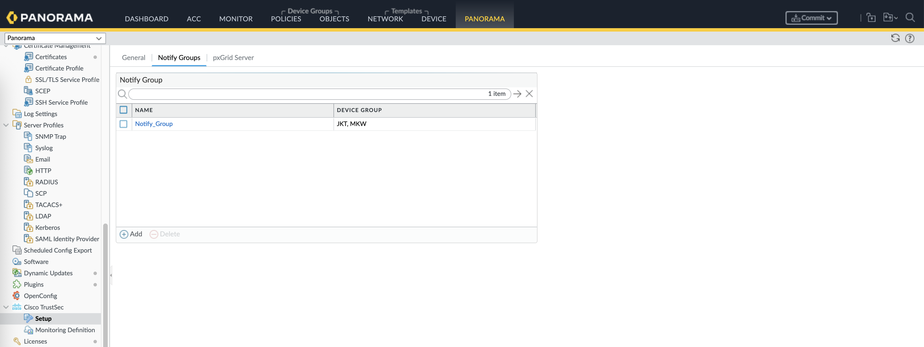 Add new Notify Group, insert the Device Groups we wish to receive this TrustSec configuration