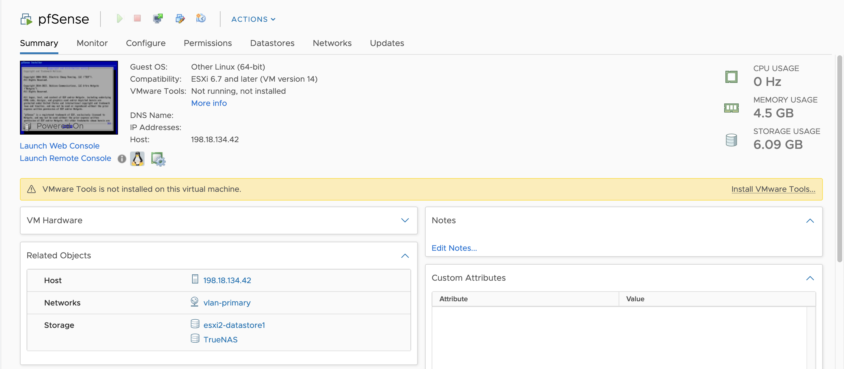 The pfSense Firewall is up and running