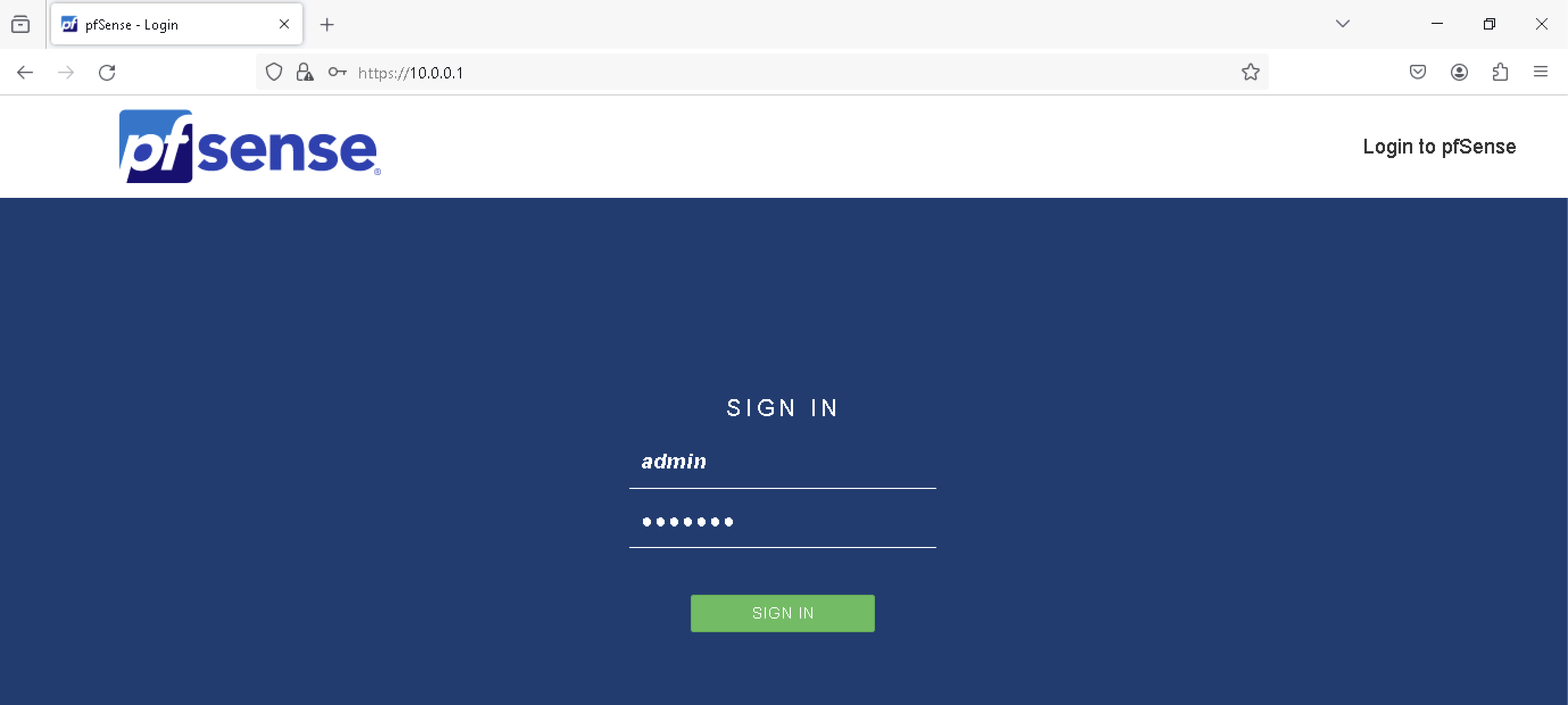 Now the Web UI should be accessible on the LAN interface with default credential of admin/pfsense