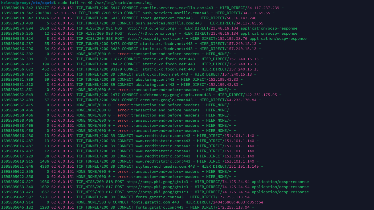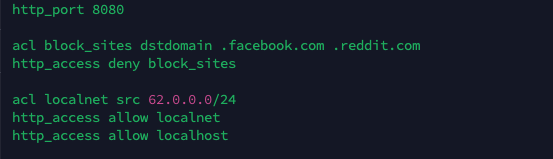 Now lets try blocking traffic to facebook and reddit, on the sqiuid.conf file add these lines